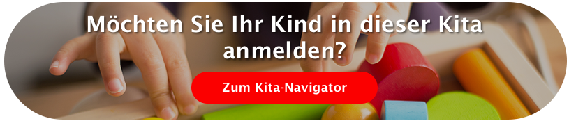 Die ebenerdige Einrichtung ist umgeben von einem großzügigen Außengelände mit Spielanlage, Sand- und Kletterbereichen und naturnah gestalteten Wiesenflächen, Hochbeeten und Obststräuchern.