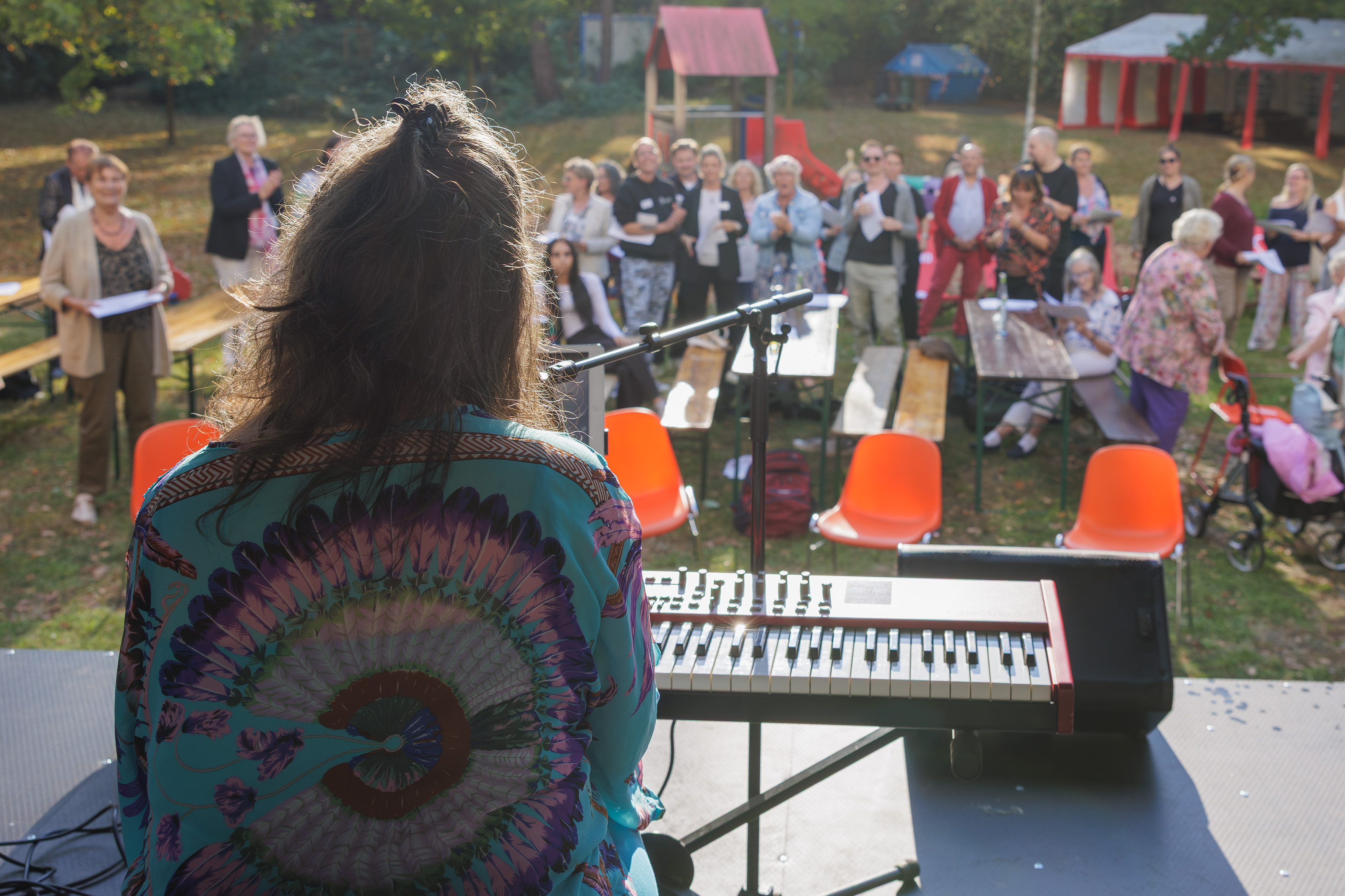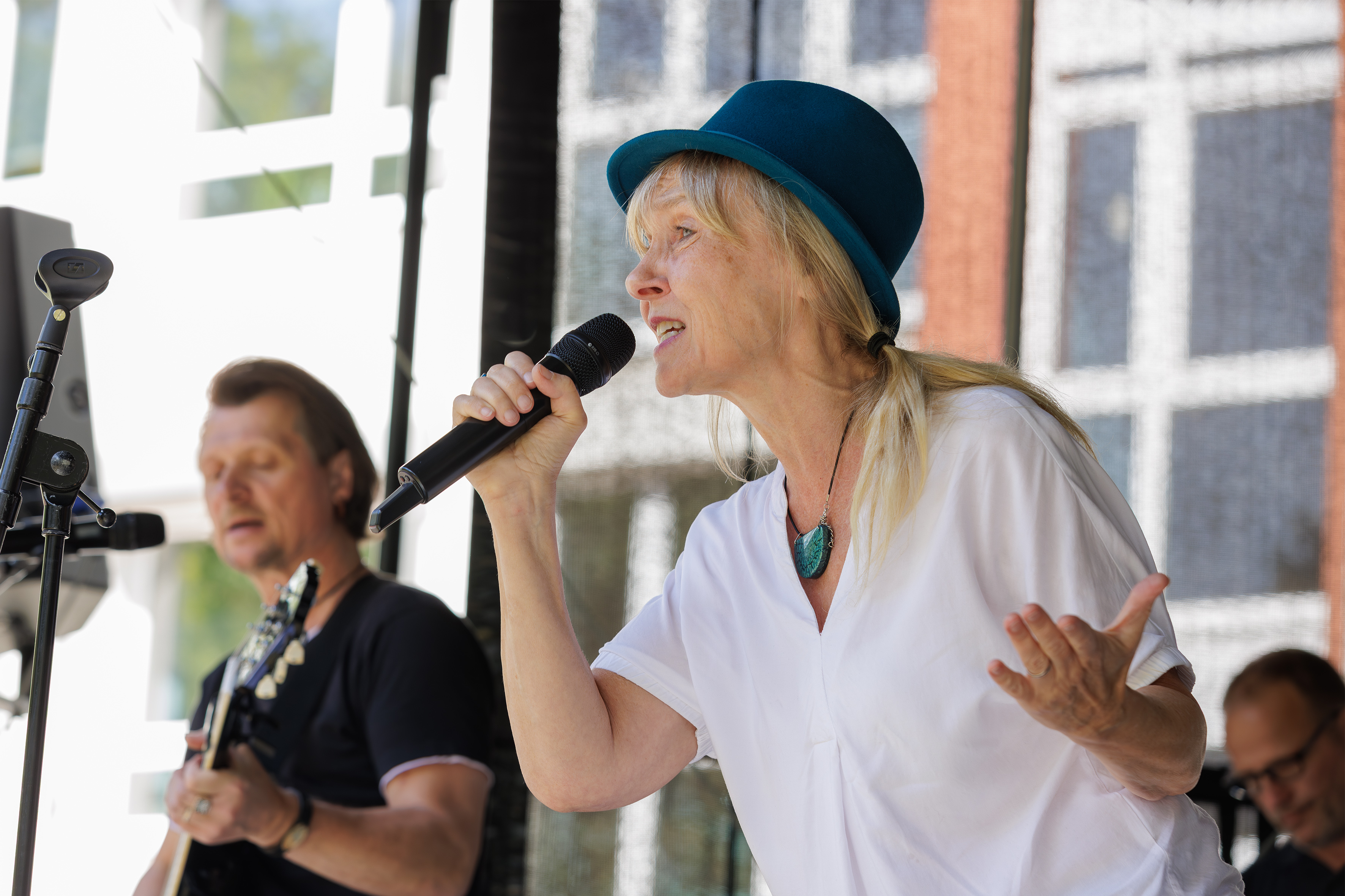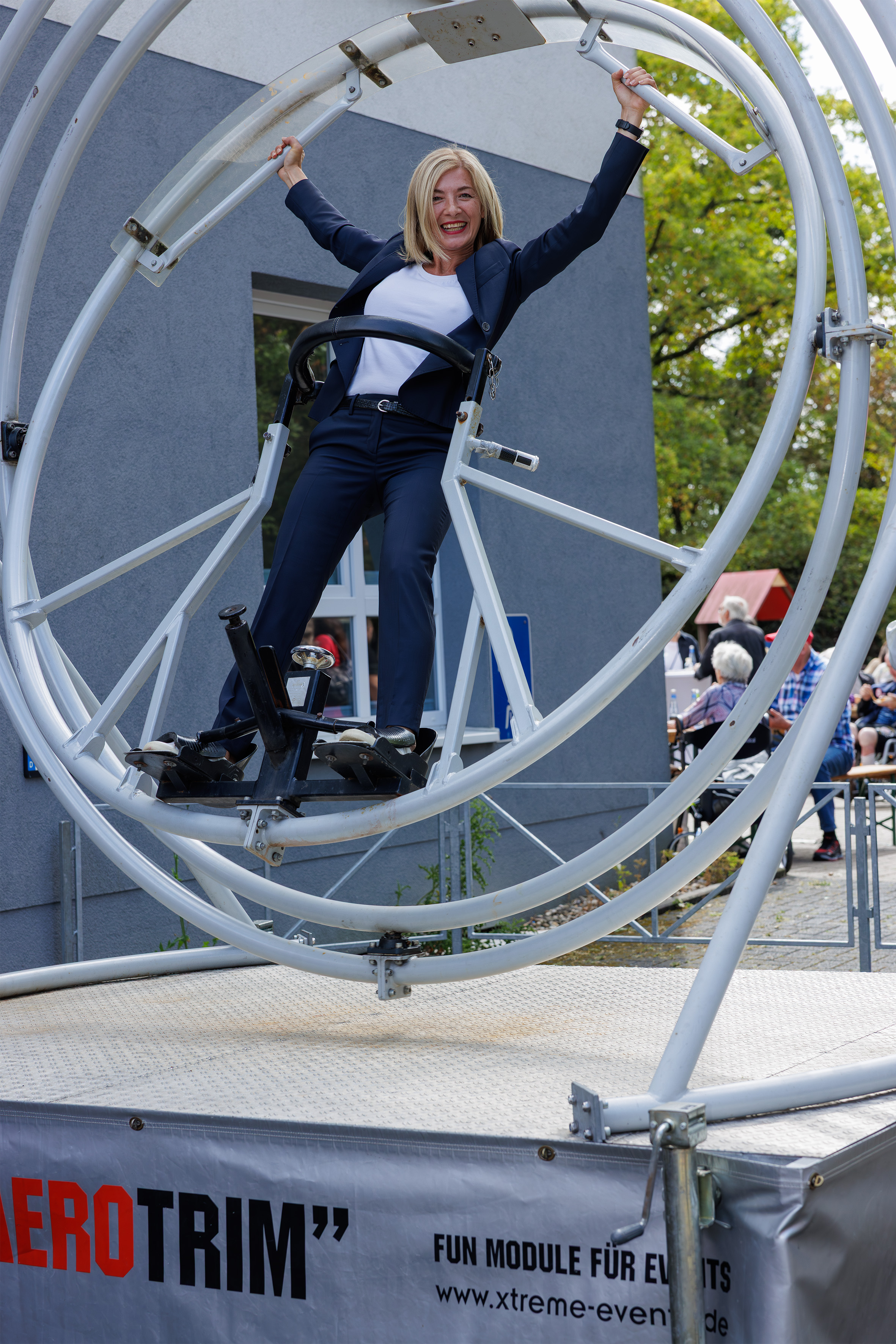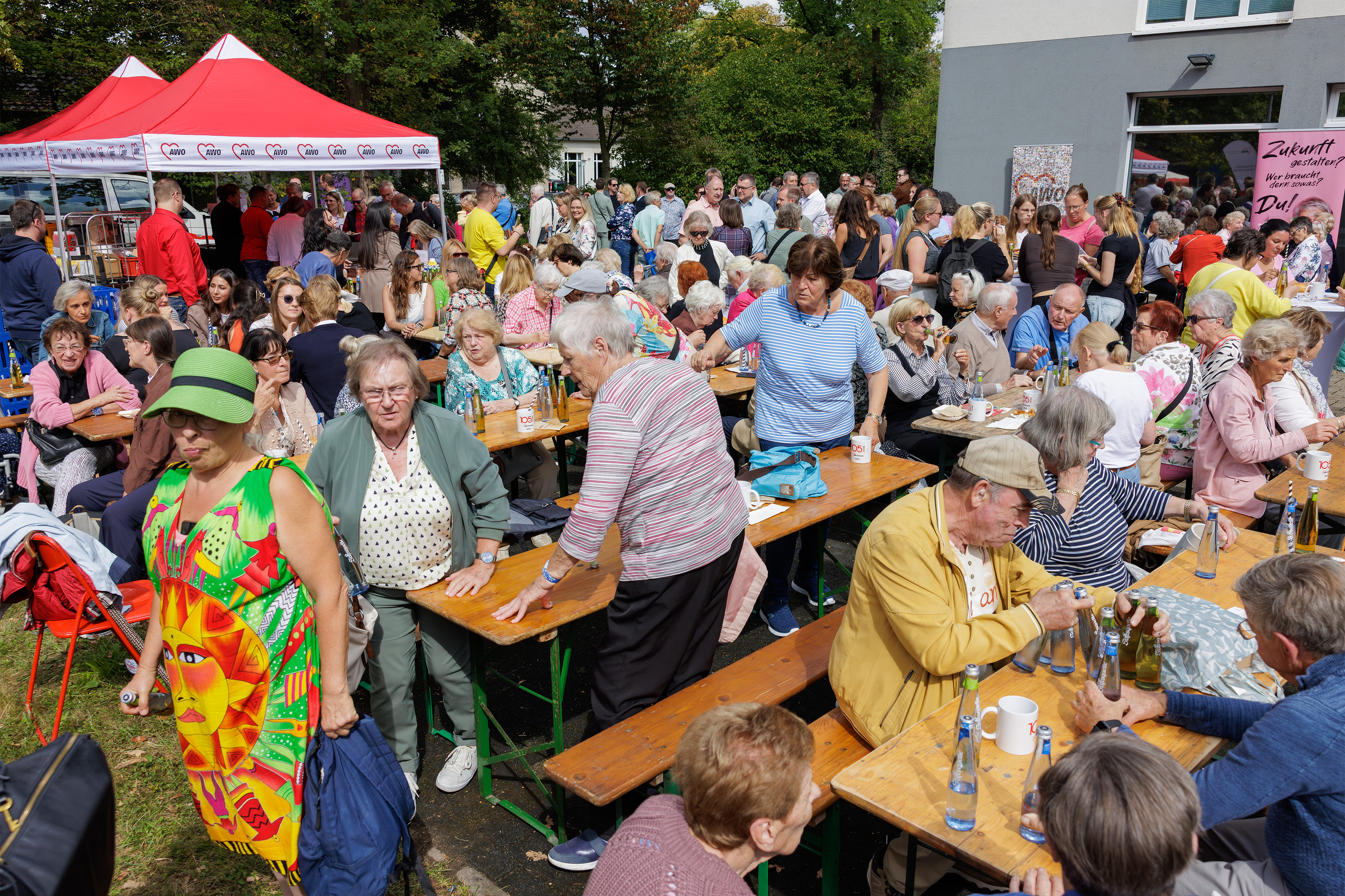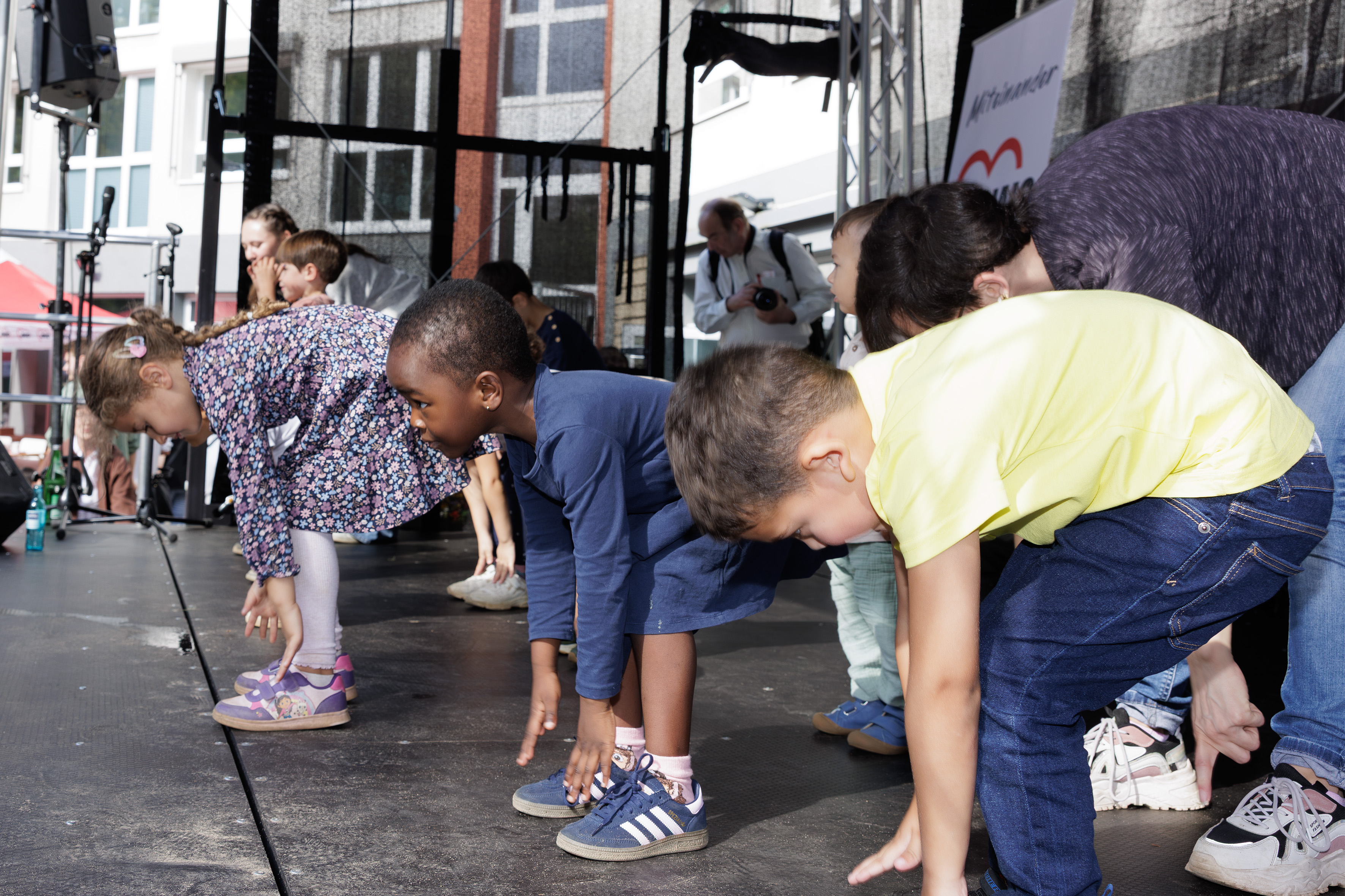 Nach den festlichen Ansprachen stand der Tag ganz im Zeichen von Begegnung, Musik und Genuss. Kulinarische Leckereien, eine fröhliche Atmosphäre und ein abwechslungsreiches Programm luden zum Mitfeiern ein. Für Stimmung sorgten unter anderem das Traubeli Reinhardt Swingtett, „Frau Bölke und das große Ganze“, „Drum & Fun“ aus dem „zentrum plus“ Unterbach, der Düsseldorfer Singer/Songwriter „enkelson.“ sowie Anja Lerch. Sie sorgte zum Abschluss des Festtages mit ihrem Mitsingkonzert nochmals für beste Laune und dirigierte ein Auditorium, das lautstark und textsicher mitwirkte. Begeistert aufgenommen wurde auch das Bewegungsprogramm von Trainer Arash aus dem „zentrum plus“ Eller. Als besonderes Highlight verzauberten die Kinder der Kitas „Marie Juchacz“ und „Schatzkiste“ mit ihren Auftritten die Gäste. Auch ein Kinderkarussell, der Aeronauten-Trainer und das Puppentheater „Papplapupp!“ fanden großen Anklang.
