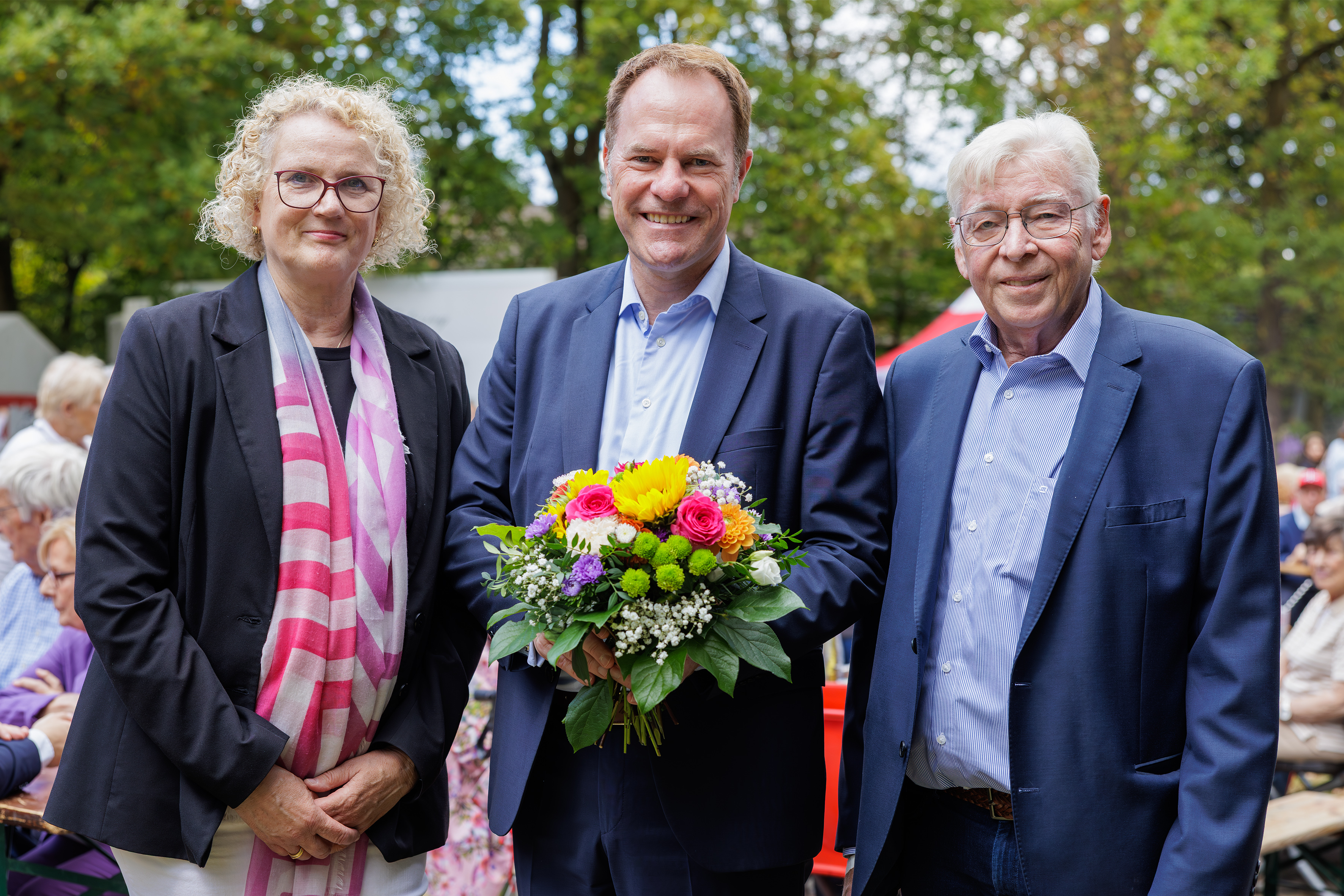 Auch Oberbürgermeister Dr. Stephan Keller würdigte in seinem Grußwort das Engagement des Sozialverbands: „Die AWO hat die Stadt sozialer und besser gemacht.“ Als symbolisches Geschenk überreichte er einen Radschläger aus Holz – Sinnbild für Heimatverbundenheit, Tradition, Innovation und Dynamik – Werte, die auch die AWO in besonderer Weise auszeichnen.
