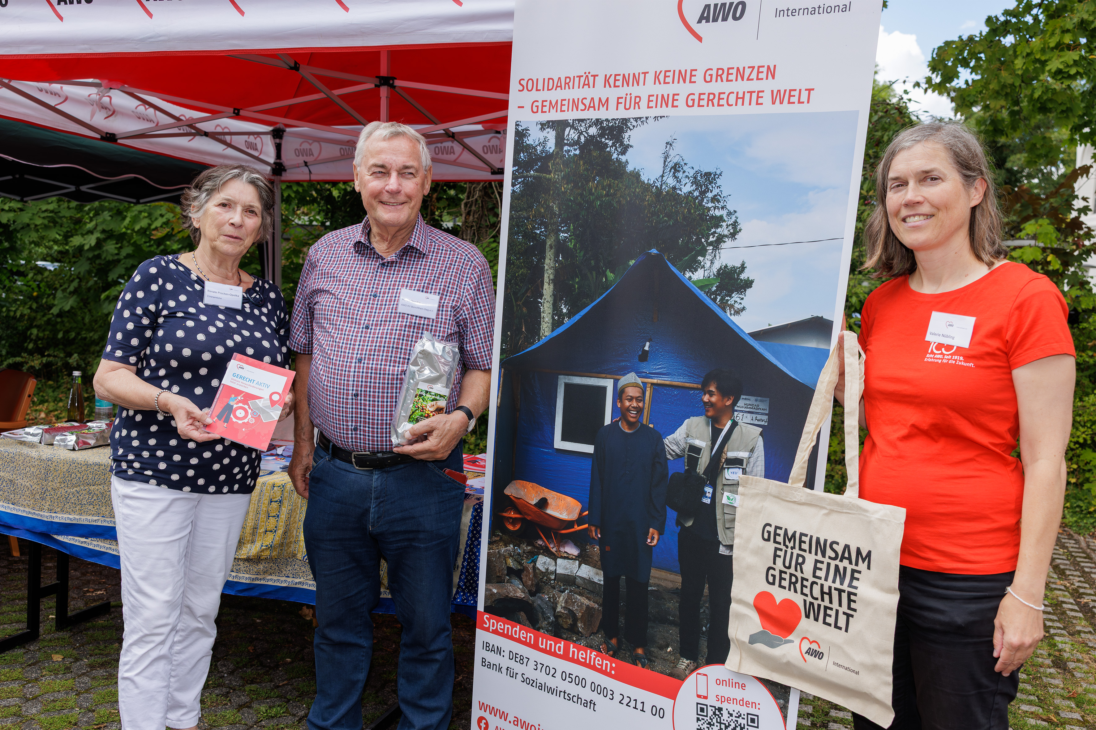 Auch die praktischen Informationen rund um die Arbeit der AWO Düsseldorf kamen bei dem Jubiläumsfest nicht zu kurz. So waren das Kreisjugendwerk, das Berufsbildungszentrum, die „zentren plus“, die Fachstelle Regenbogenfamilien, die AWO-Kitas, der Kinder- und Jugendanwalt Till Eulenspiegel und der Bereich Inklusion der AWO VITA mit eigenen Informationsständen vertreten. Besonderes Interesse fand der Stand von AWO International, dem Fachverband der AWO für Entwicklungszusammenarbeit und humanitäre Hilfe. Er präsentierte sich zum ersten Mal in Düsseldorf.