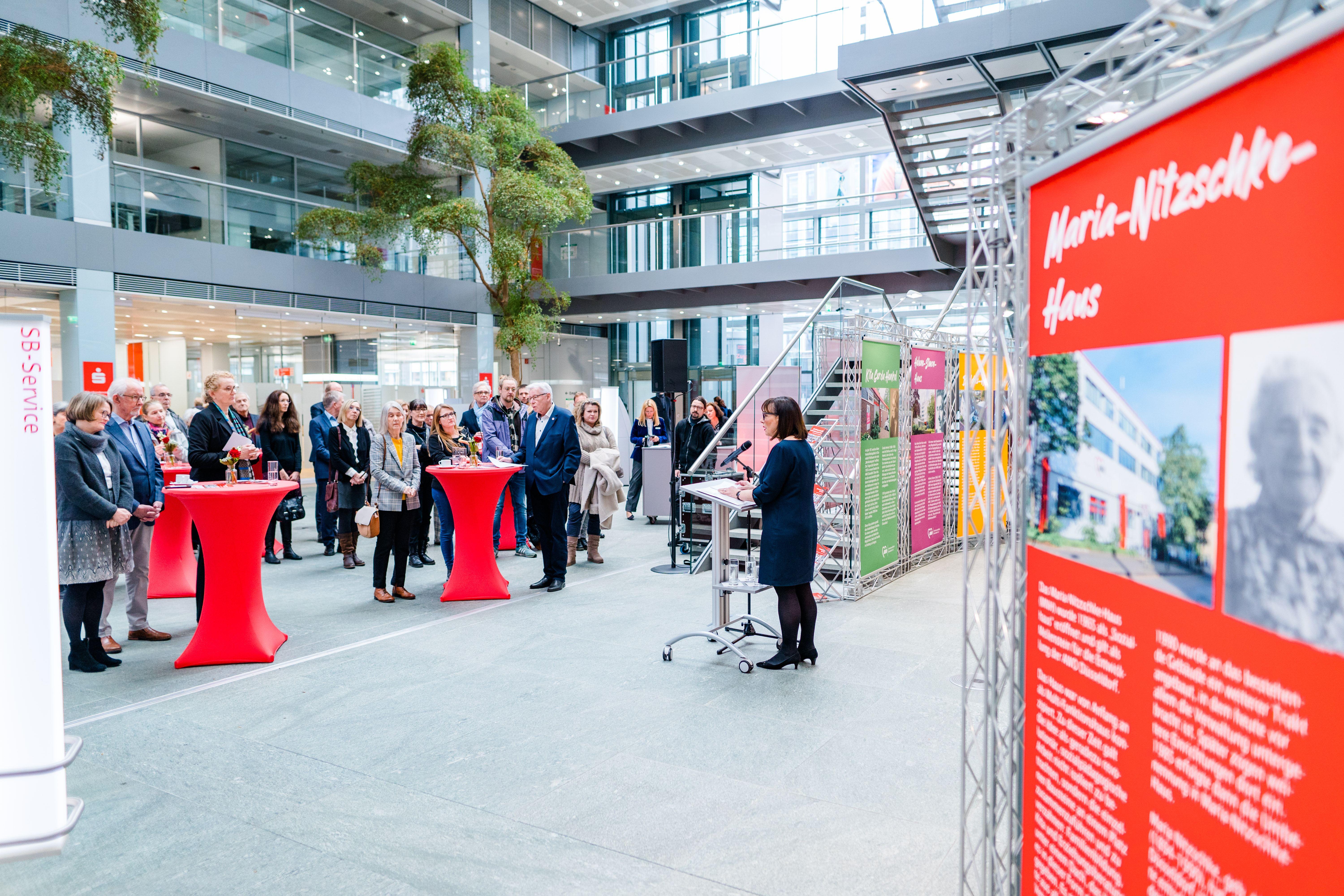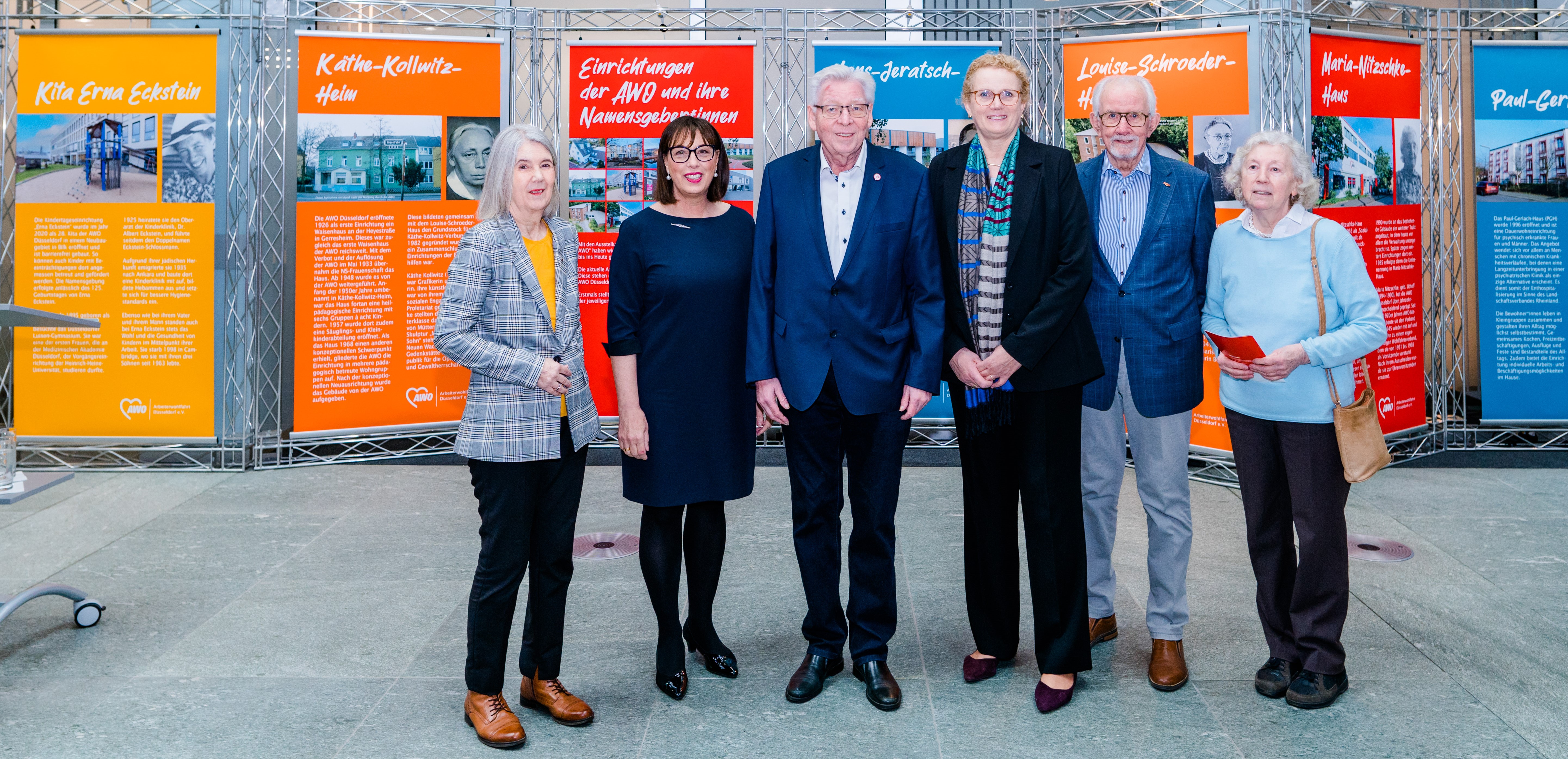 Damit wird erstmals der Bogen geschlagen von der Historie ausgewählter Einrichtungen zu den Persönlichkeiten, deren Namen sie jeweils tragen. Auf 15 großformatigen Bannern rückt die Schau jene Einrichtungen ins Licht, die stellvertretend für die Vielfalt und Ausrichtung der über 150 AWO-Einrichtungen in Düsseldorf stehen. Die Schau im Atrium der gastgebenden Stadtsparkasse Düsseldorf an der Berliner Allee wurde am heutigen Donnerstag (9.3.) eröffnet. Sie ist noch bis einschließlich 6. April (Gründonnerstag) zu sehen.