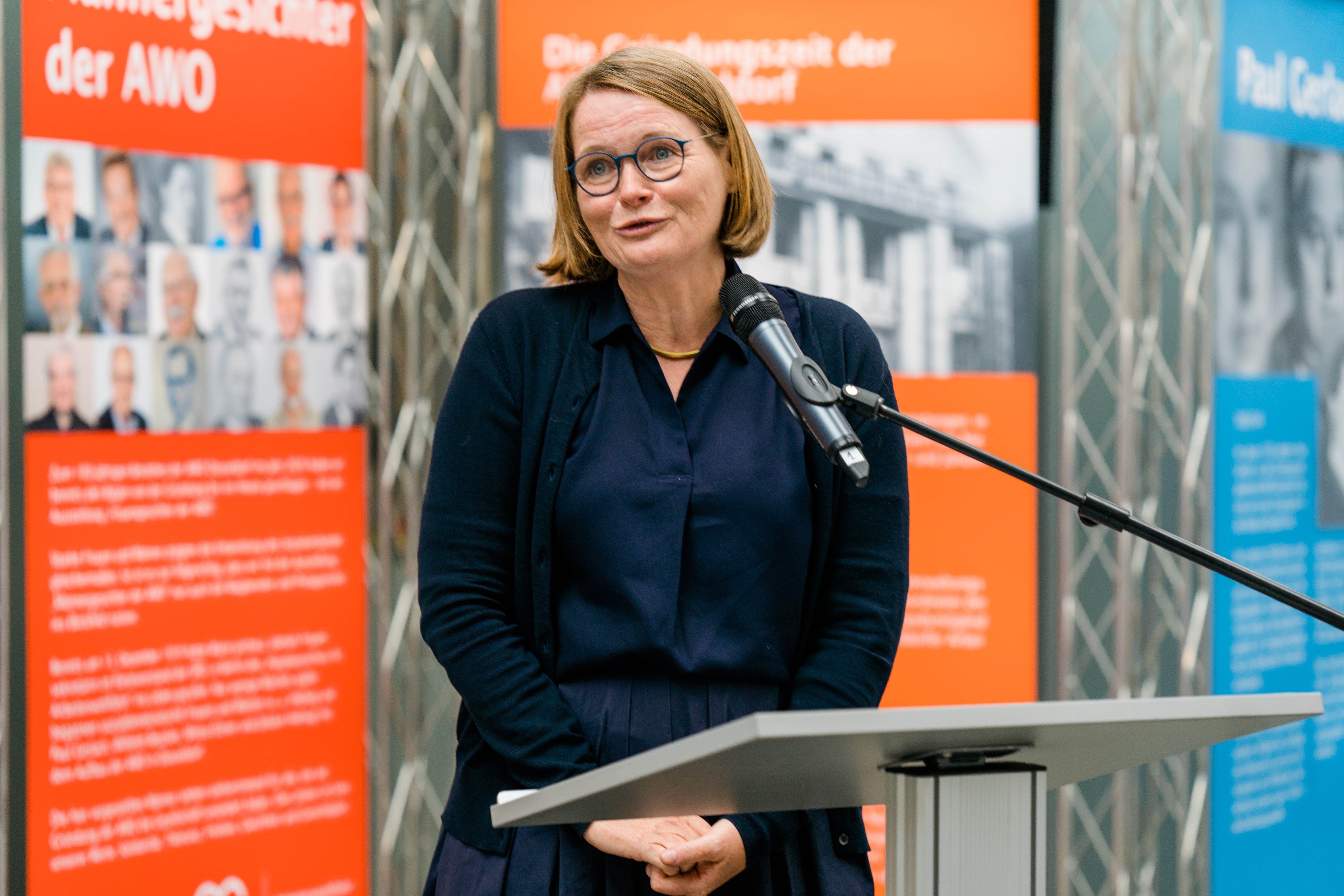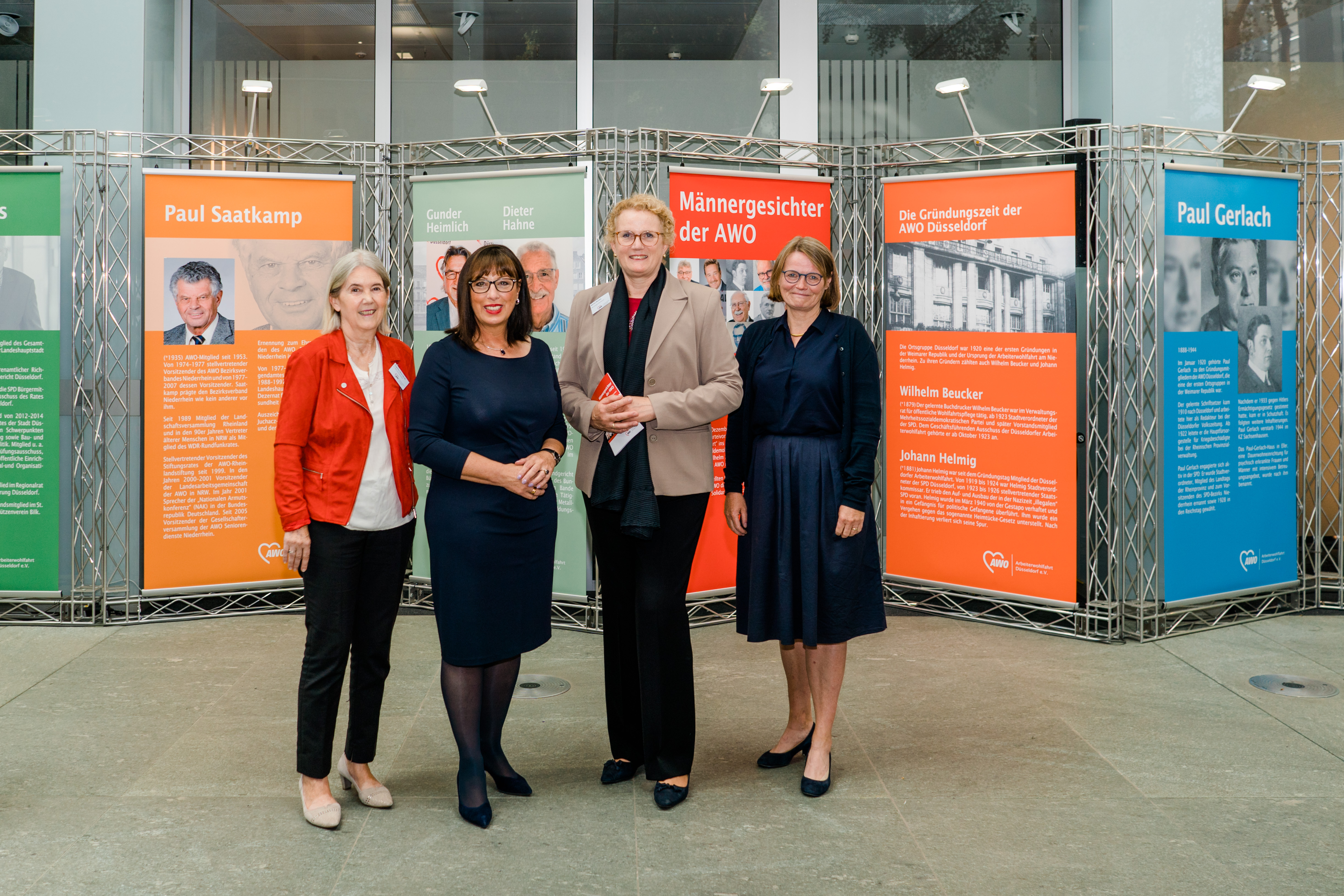 Angelika Wien-Mroß, stellvertretende AWO-Vorsitzende: „Ich freue mich sehr und bin auch ein wenig stolz darauf, dass wir im nunmehr 101. Jahr der AWO Düsseldorf jetzt die Leistung der Männer mit einer eigenen Ausstellung würdigen können. Die hier versammelte Power ist ebenfalls beeindruckend und macht Mut für die Zukunft.“