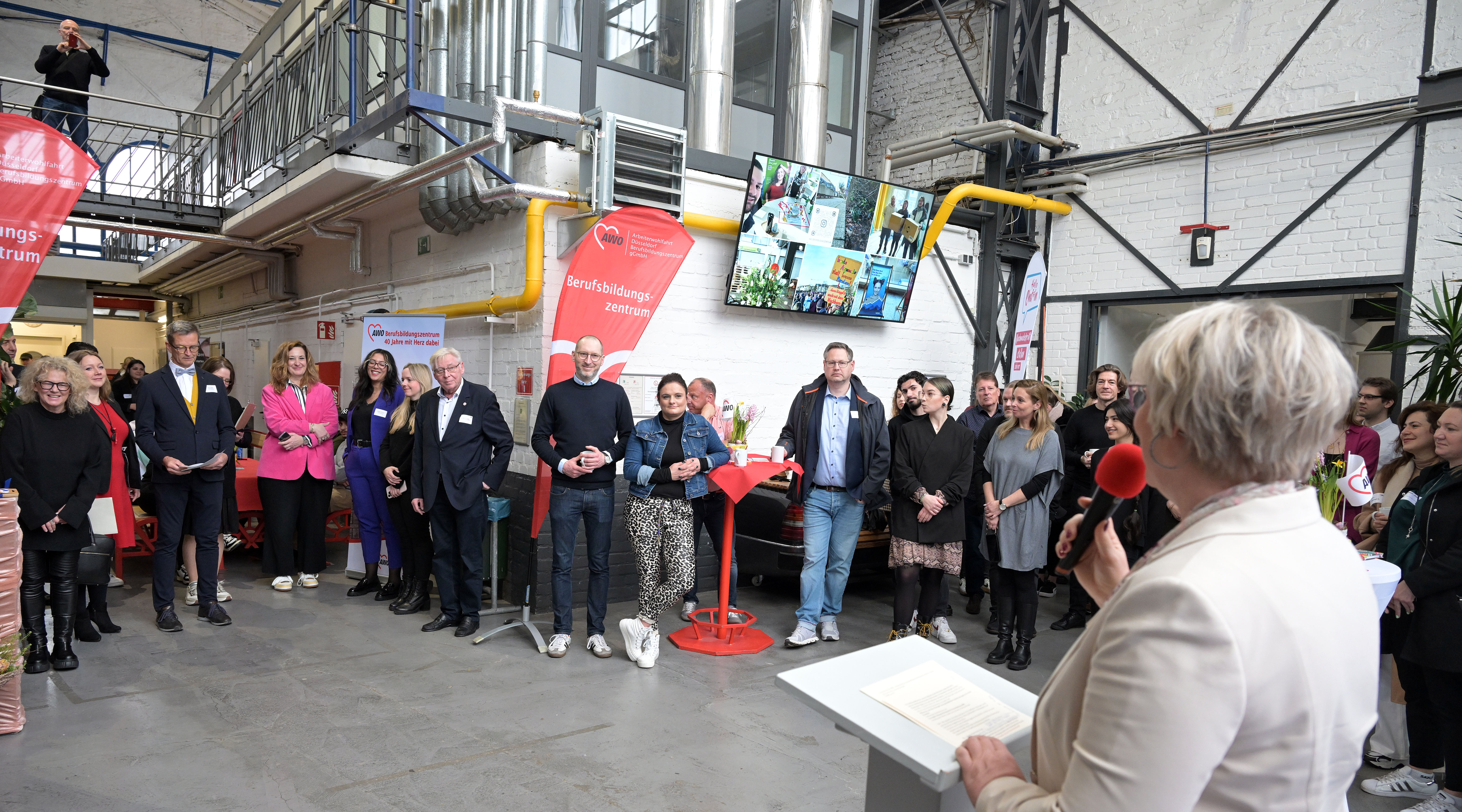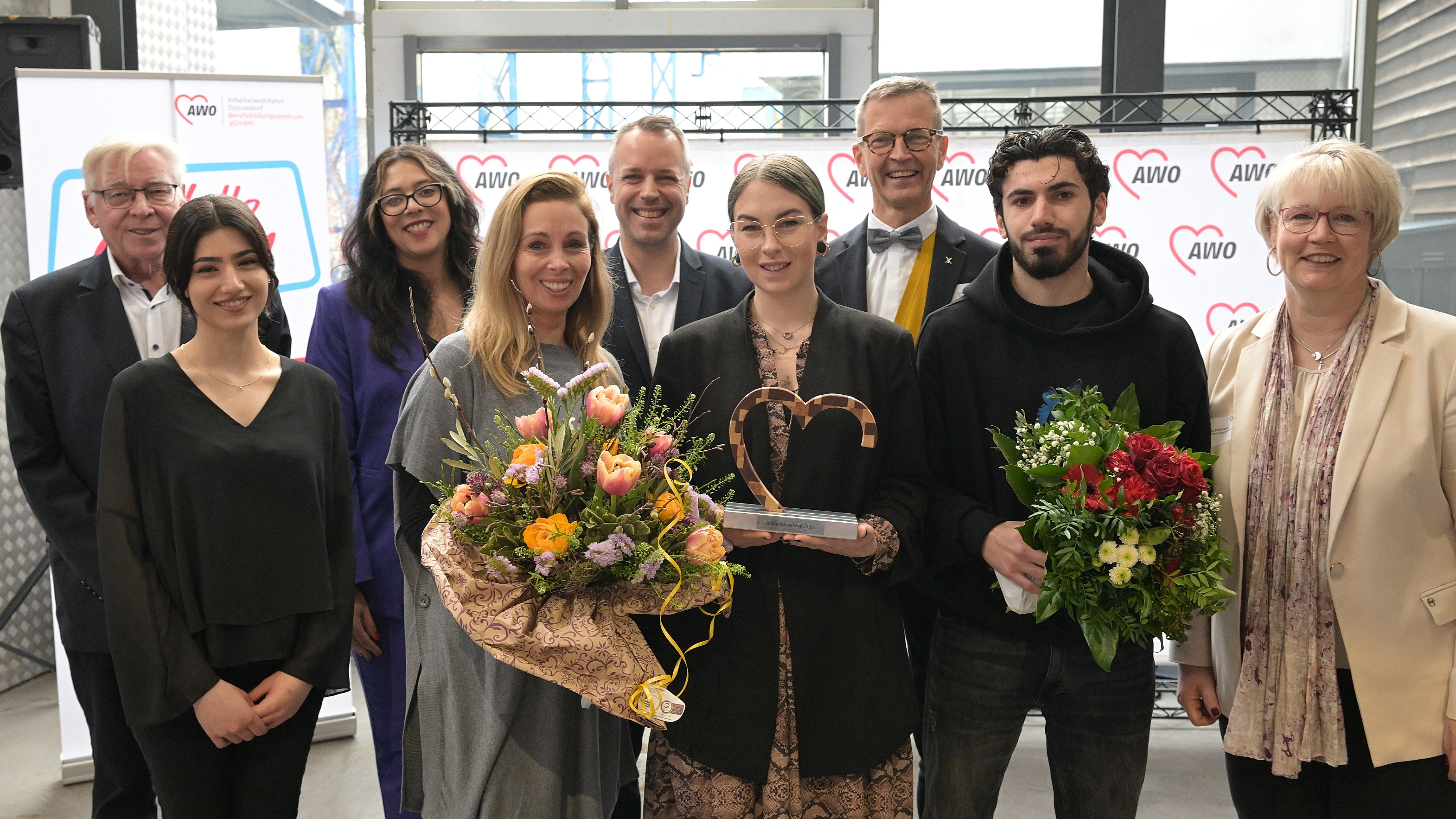 Ein Herz für vorbildliche Ausbildungsbetriebe: Das AWO-Ausbildungsherz geht in diesem Jahr an „mod‘s hair privilège“ aus Düsseldorf – ein Unternehmen, das sich einem Friseur-Erlebnis der Extraklasse verschrieben hat. Das jährlich vergebene Ausbildungsherz würdigt Firmen, die sich besonders für die Förderung der beruflichen Entwicklung junger Menschen einsetzen. Am Mittwoch (13. März) wurde das Ausbildungsherz im AWO Berufsbildungszentrum (BBZ) in Düsseldorf-Flingern übergeben. Neben Bürgermeister Josef Hinkel sprach der Geschäftsführer operativ der Agentur für Arbeit Düsseldorf, Christoph Tatura, ein Grußwort.