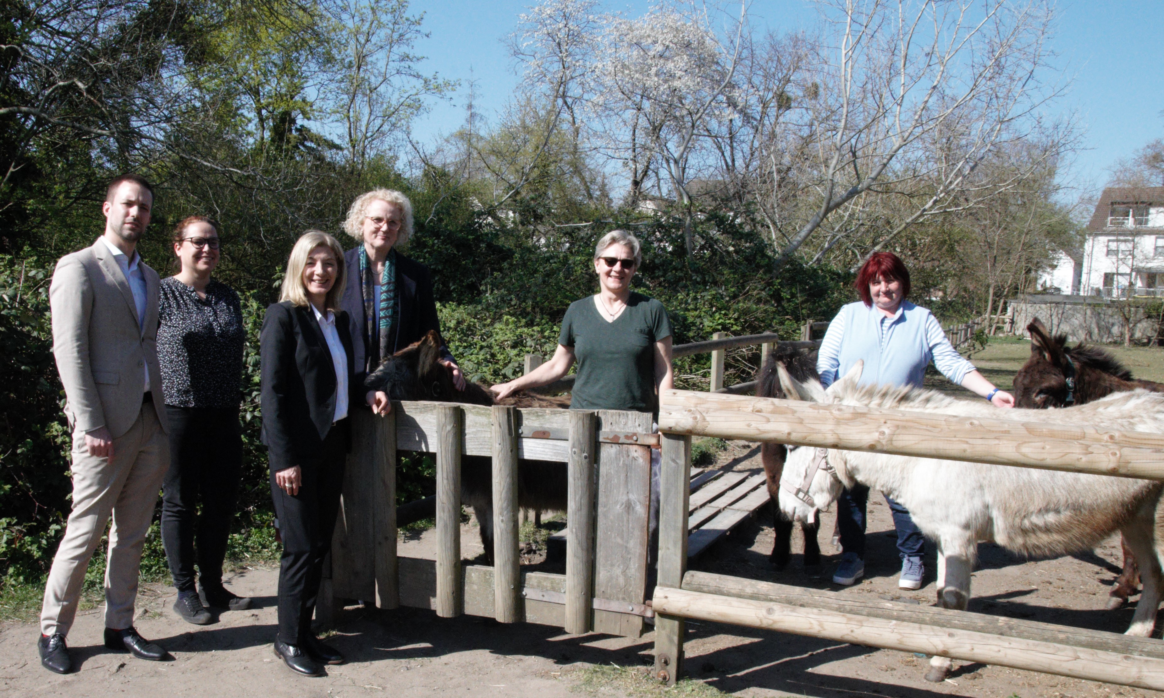Nach dem theoretischen Teil besichtigte der Gast aus Berlin das große Freigelände und hier insbesondere die Tierfarm. Vorständin Claudia Mandrysch ließ es sich nicht nehmen, eine der symbolischen Esel-Aktien zu erwerben. Mit dem Erlös der Aktien wird ein Teil des Unterhalts der Tiere gedeckt.