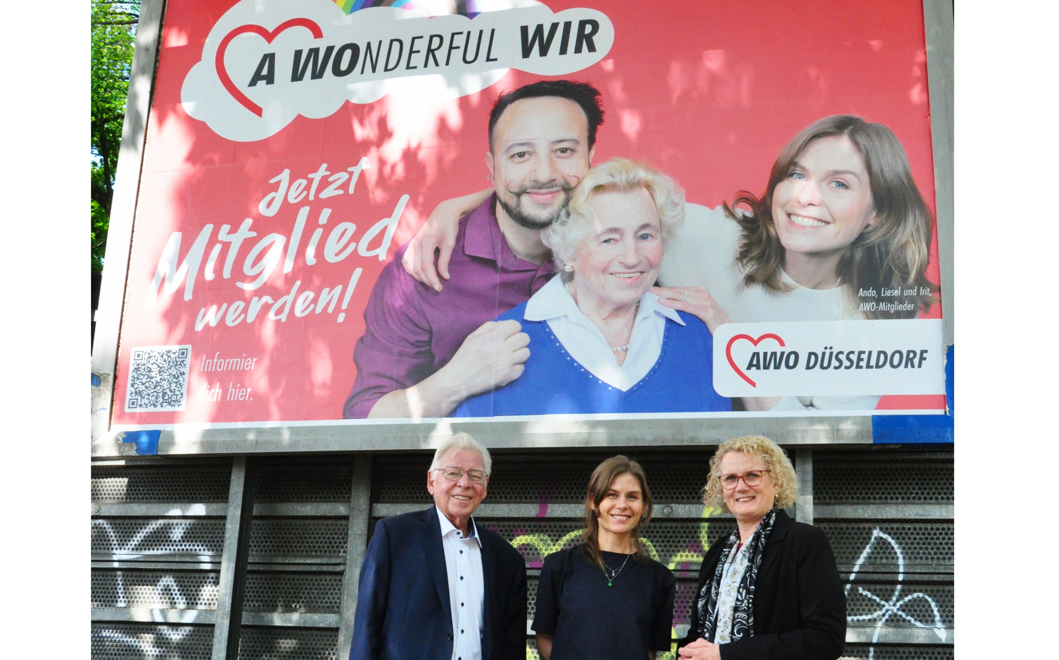 Mit dem Start ihrer großangelegten Out-of-Home-Kampagne Anfang Mai rückt die AWO Düsseldorf ihr seit 105 Jahren gelebtes Miteinander in den Mittelpunkt und wirbt aktiv um neue Mitglieder in der Stadt. Unter dem Motto „A WOnderful WIR“ präsentiert sich die Kampagne auf Großflächenplakaten, Roadsides und Infoscreens in der ganzen Stadt und wird zusätzlich durch gezielte Werbe-Maßnahmen in den sozialen Netzwerken begleitet.