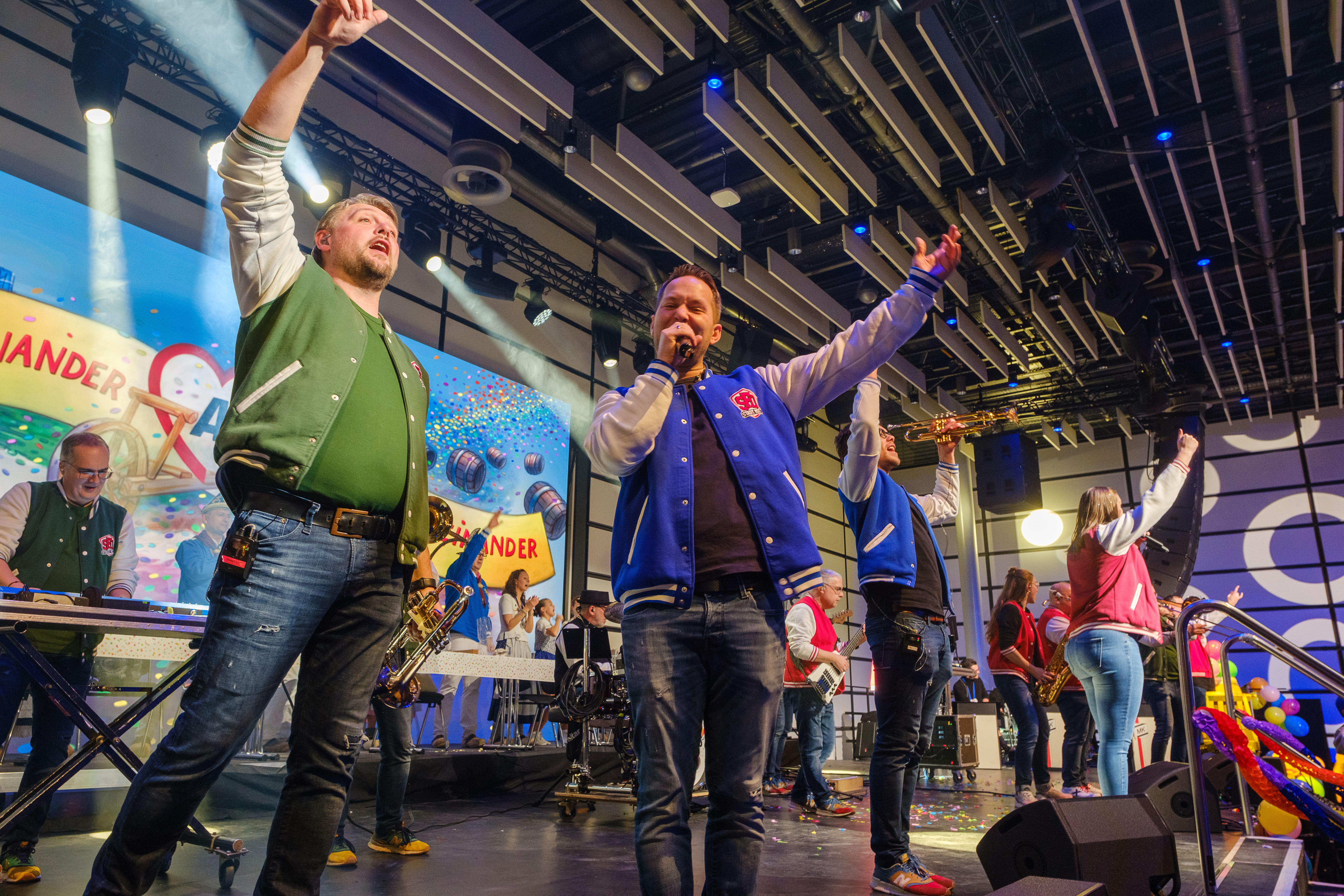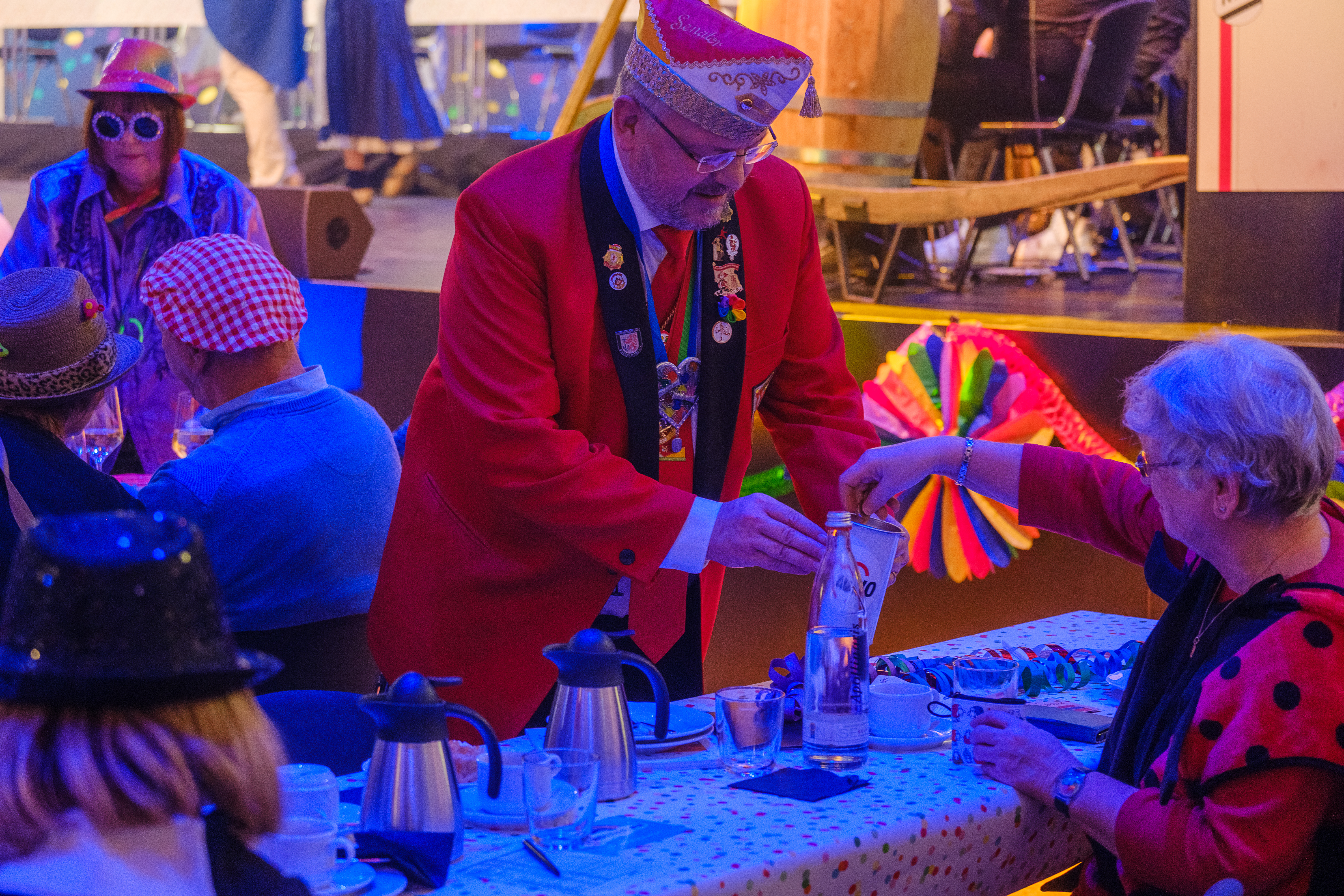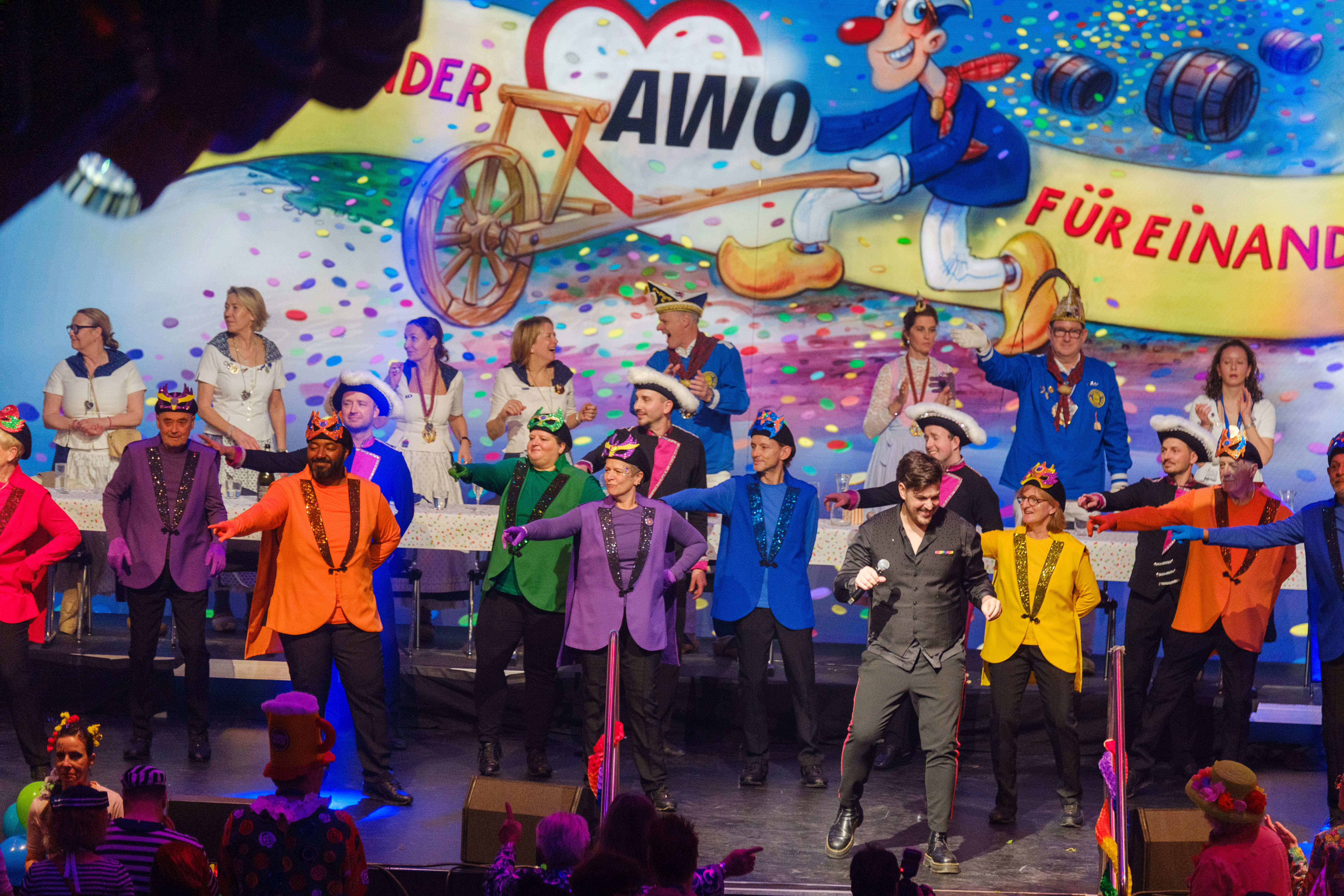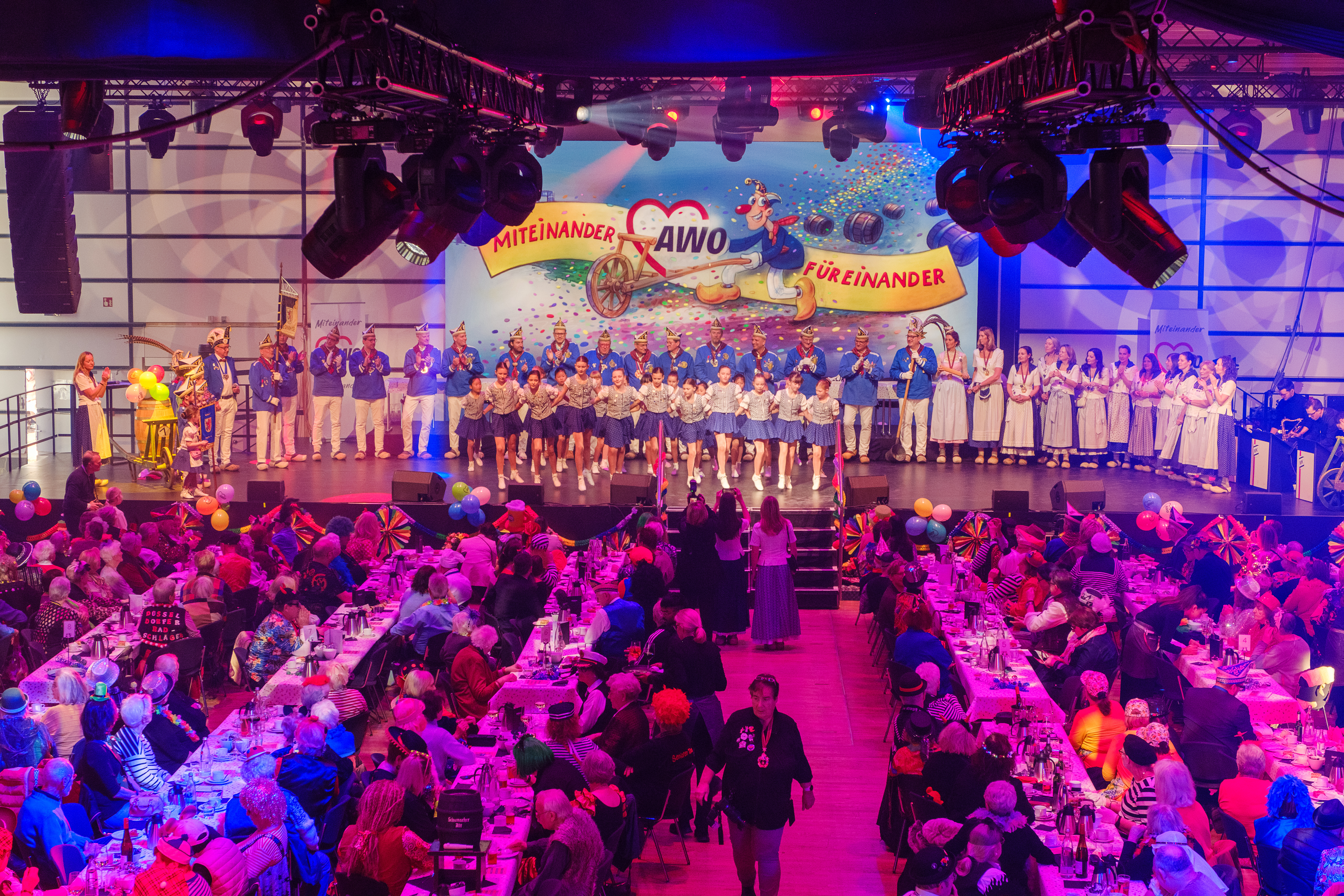 Kurze Zeit später zog das Prinzenpaar samt Gefolge offiziell in den Festsaal ein – der emotionale Höhepunkt jeder jecken Sitzung. Spätestens jetzt hielt es niemanden mehr auf den Sitzen, der Saal bebte. Auch die KG Regenbogen, eine feste Größe im AWO-Karneval, überzeugte erneut mit tänzerischen und gesanglichen Spitzenleistungen. Den stimmungsvollen Abschluss bildeten wie im vergangenen Jahr die „Swinging Funfares“. Sie heizten dem Publikum noch einmal kräftig ein und zogen gemeinsam mit den Jecken in einer großen Polonaise durch den Saal.