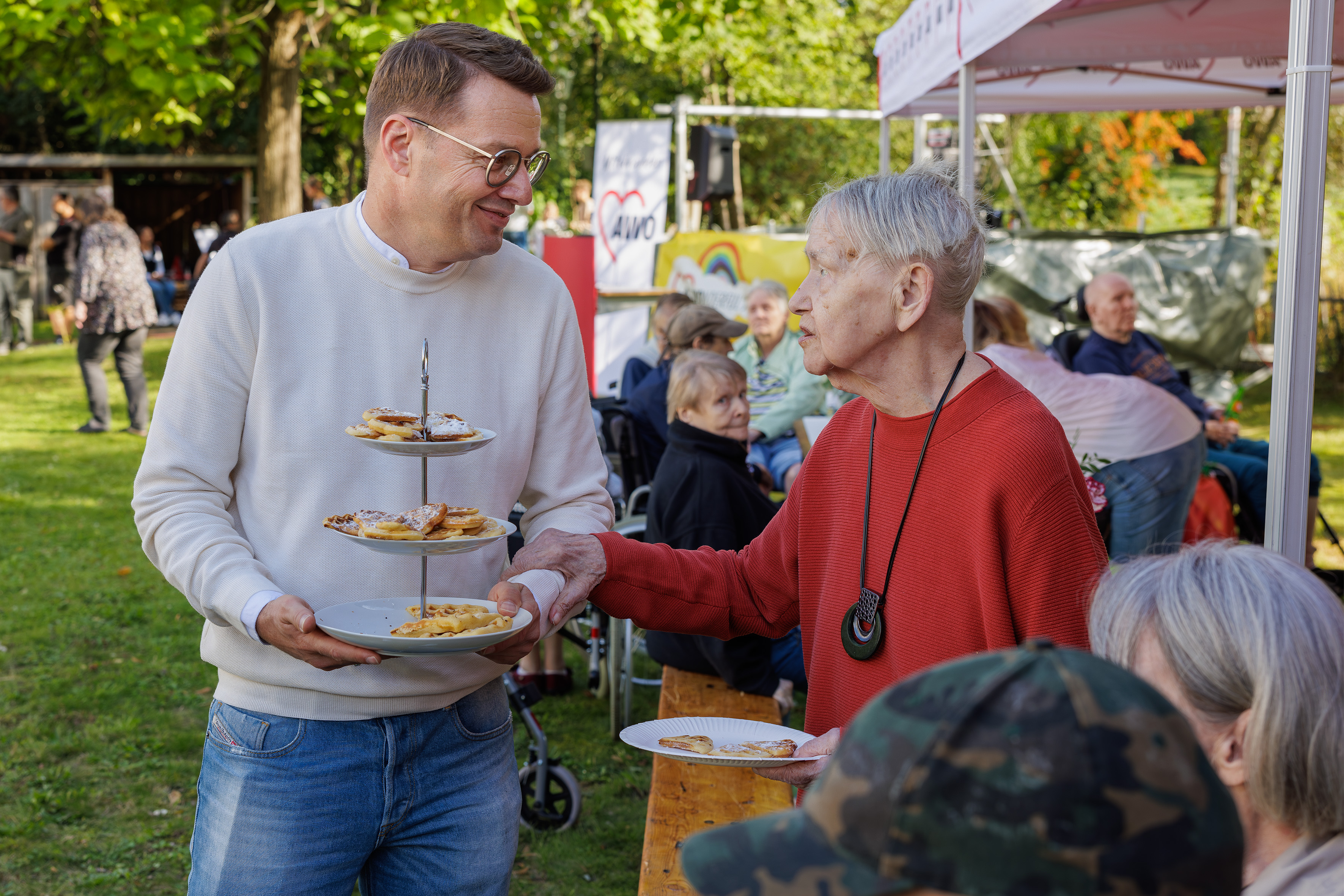 Bürgermeisterin Klaudia Zepunkte betonte in ihrem Grußwort: „Wir brauchen mehr solcher Orte, Orte der Zuwendung und der Menschlichkeit.“ Prof. Dr. Tillmann Supprian (LVR-Klinikum Düsseldorf), gab in seinem Gastvortrag einen Einblick in aktuelle Entwicklungen der Gerontopsychiatrie. Karl-Josef Keil, Ehrenpräsident der AWO Düsseldorf, hat den Auf- und Umbau der Einrichtung viele Jahre lang verantwortlich begleitet und ließ anhand einiger Anekdoten die Geschichte des Hauses Revue passieren.