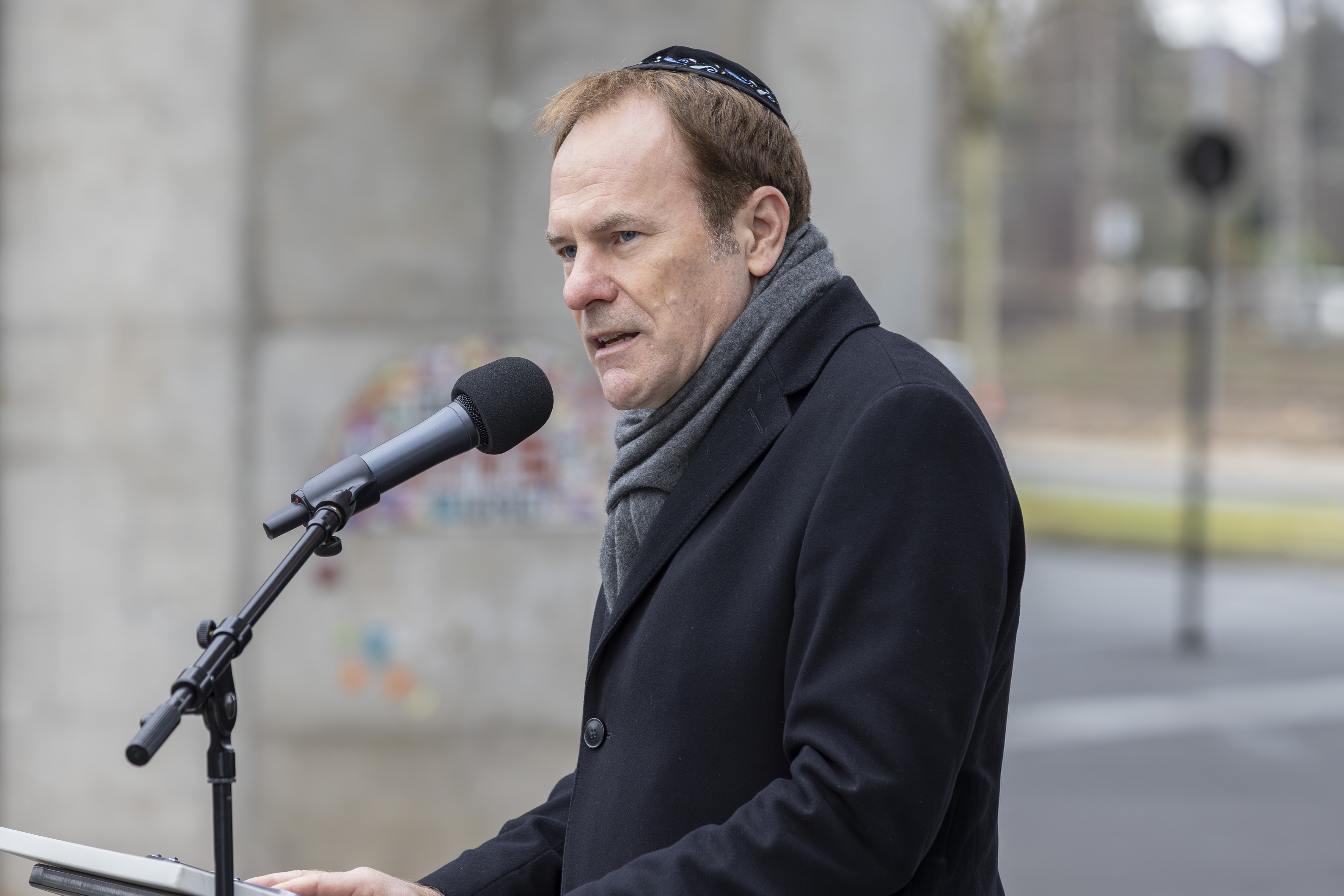 Oberbürgermeister Dr. Stephan Keller erinnerte in seiner Ansprache daran, dass Diskriminierung, Ausgrenzung und Hass nicht abstrakt entstehen, sondern „in den Köpfen der Menschen, in ihrer Sprache, im Hausflur und am Arbeitsplatz, im Stadtviertel und in der vertrauten Heimat“. Daraus erwachse eine klare Verantwortung für die Gegenwart: Judenhass überall zu erkennen, zu benennen und entschieden zu ächten.