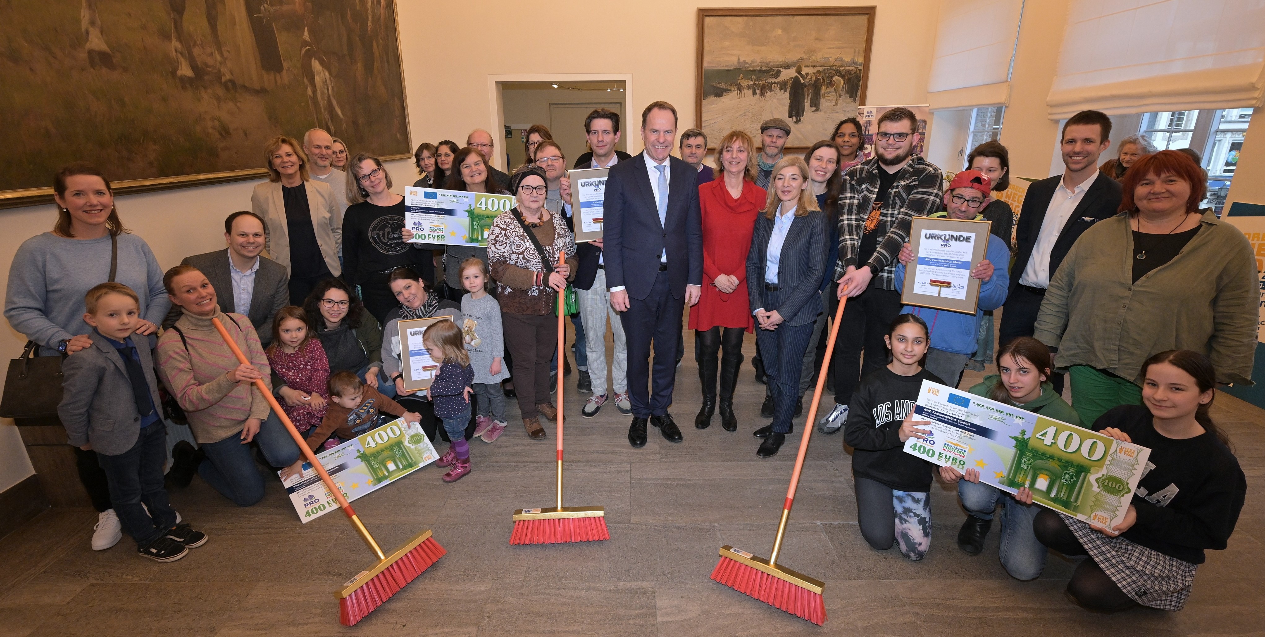Für ihren Einsatz für ein sauberes Düsseldorf hat OB Dr. Stephan Keller gemeinsam mit Vertretern des Vereins „Pro Düsseldorf“ sowie der Deutschen Postcode Lotterie im Rathaus drei Goldene Besen verliehen. Zu den diesjährigen Preisträger*innen gehört der Aktiv- und Stadtteiltreff der AWO Familienglobus gGmbh.