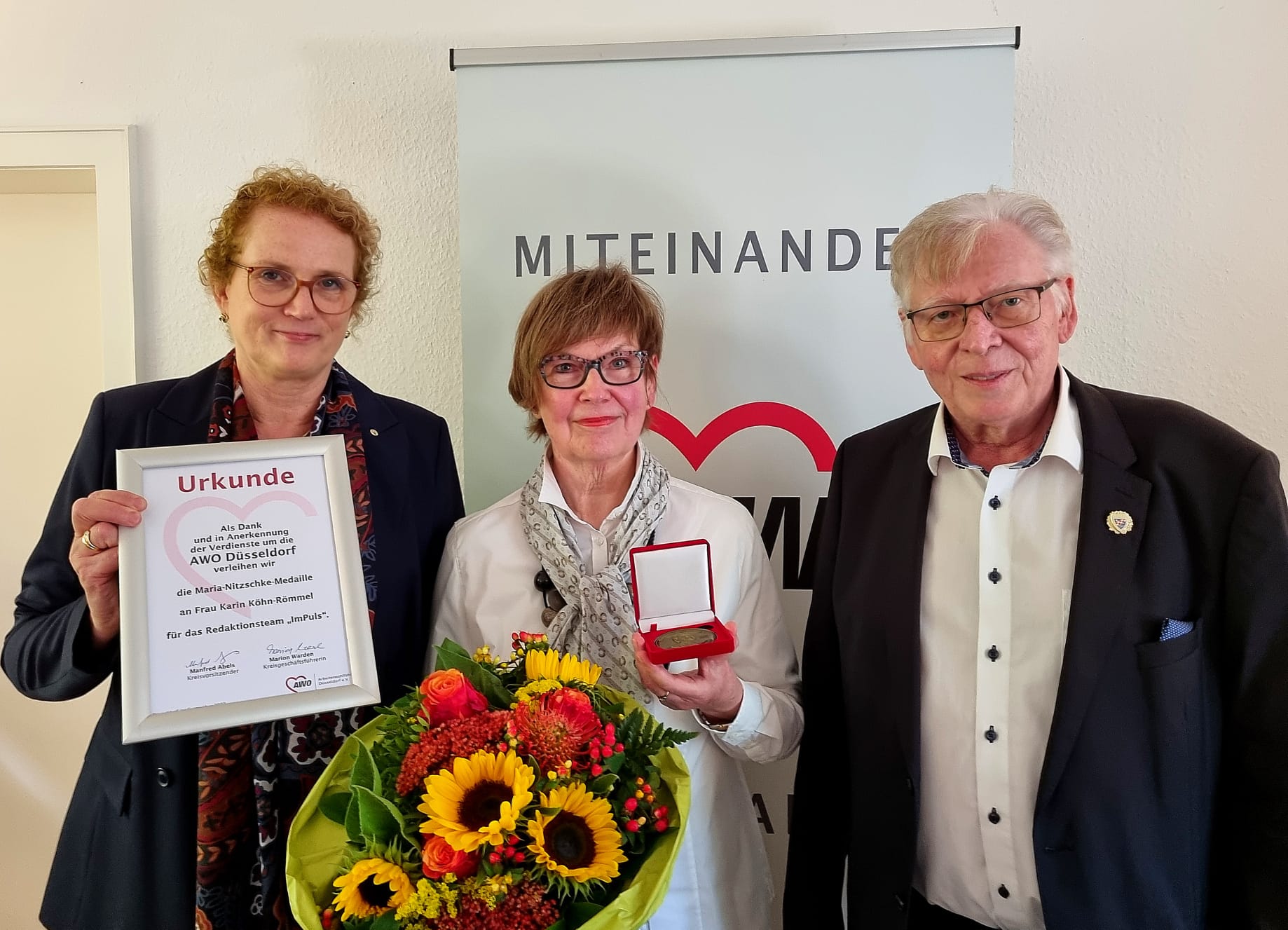 Hohe Auszeichnung für ein ganz besonderes ehrenamtliches Engagement: Die AWO Düsseldorf hat am Sonntag, 11. September, im Kürtenhof in Flingern zum zweiten Mal die Maria-Nitzschke-Medaille verliehen. Für ihren besonderen Einsatz wurde das Redaktionsteam der Zeitschrift „ImPuls“ geehrt.