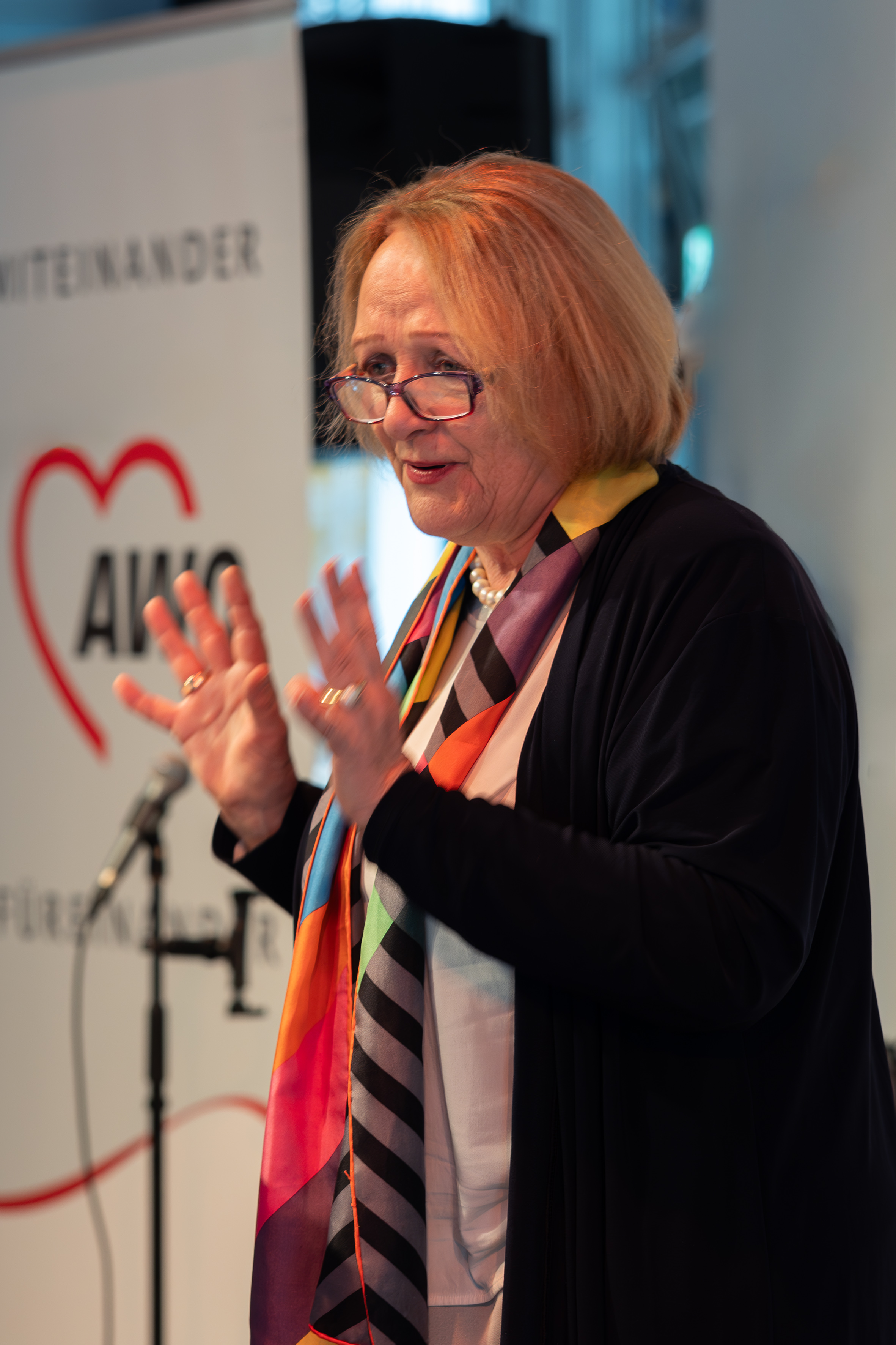 AWO-Kreisgeschäftsführerin Marion Warden rief den Anwesenden die Bedeutung der Freien Wohlfahrt für den deutschen Sozialstaat, gerade in schwierigen Zeiten, in Erinnerung: „Die freie Wohlfahrt ist kein Selbstzweck, sondern dient wesentlich zur Milderung des sozialen, des alltäglichen Unfriedens im Land und trägt damit zum so wichtigen Erhalt des sozialen Friedens als Voraussetzung für eine starke Demokratie bei.“ Der Einsatz für eine offene, tolerante und vielfältige Gesellschaft gehöre zur AWO-DNA seit ihrer Gründung vor mehr als 100 Jahren. Mit Blick auf das Thema Antisemitismus fügte sie hinzu: „Wir lassen uns nicht beirren, stehen zu unseren Werten von Freiheit, Gleichheit Pluralismus und Demokratie. Wir stehen zu unseren Freundinnen und Freunden, so wie diese auch an unserer Seite sind.“