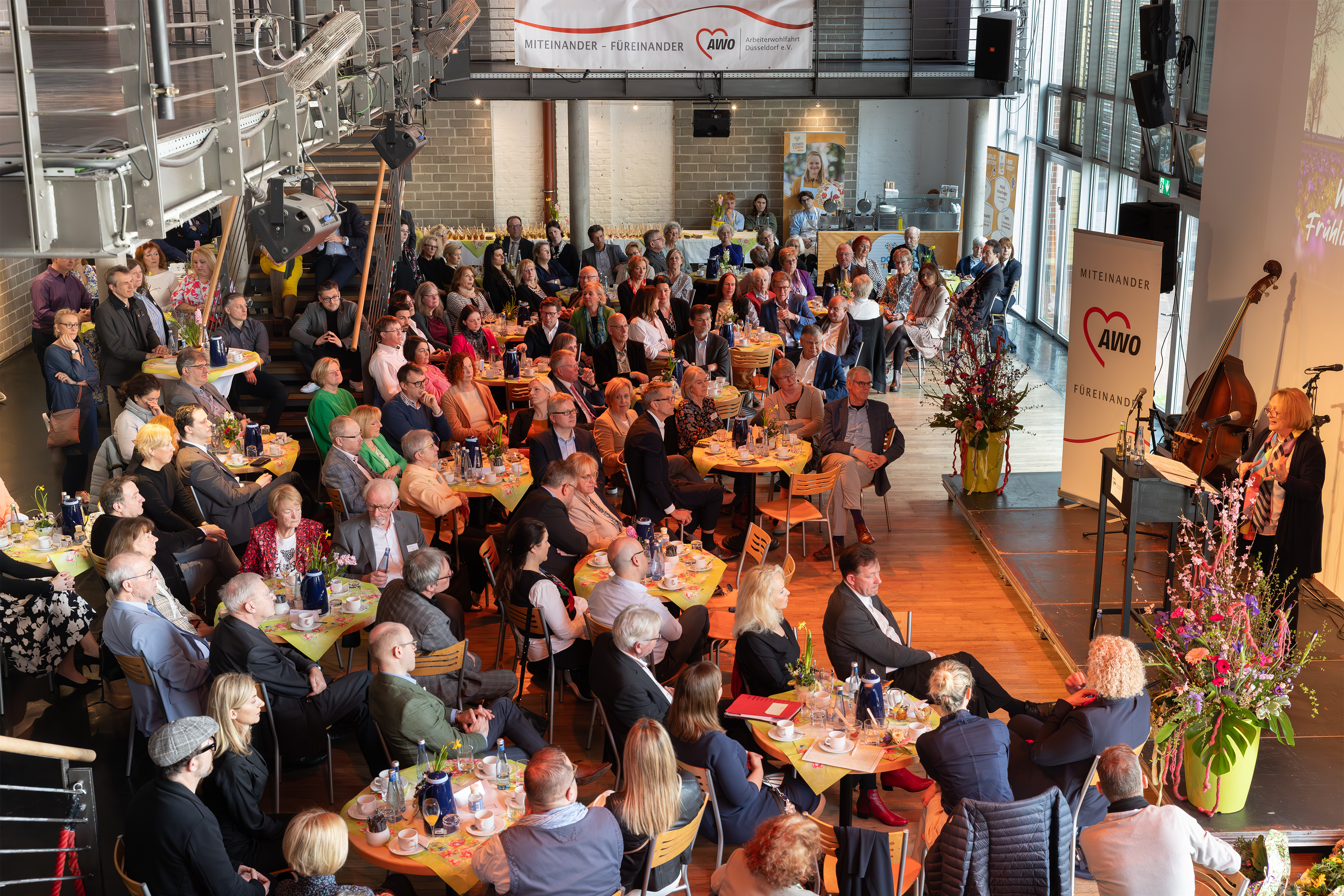 „Angriffe auf unsere jüdischen Freundinnen und Freunde sind Angriffe auf uns. Es liegt an uns, eine Grenze zu ziehen: Nie wieder ist jetzt.“ Mit diesen Worten eröffnete der AWO-Kreisvorsitzende Manfred Abels den traditionellen Frühlingsempfang des Sozialverbandes. Rund 200 Gäste aus allen Bereichen der Düsseldorfer Stadtgesellschaft hatten sich im tanzhaus nrw zu einem Vormittag der Begegnung und des Austauschs eingefunden. Im Mittelpunkt stand der Gastvortrag von Sabine Leutheusser-Schnarrenberger, der Antisemitismusbeauftragten des Landes NRW. Stadtdirektor Burkhard Hintzsche überbrachte das Grußwort der Landeshauptstadt.