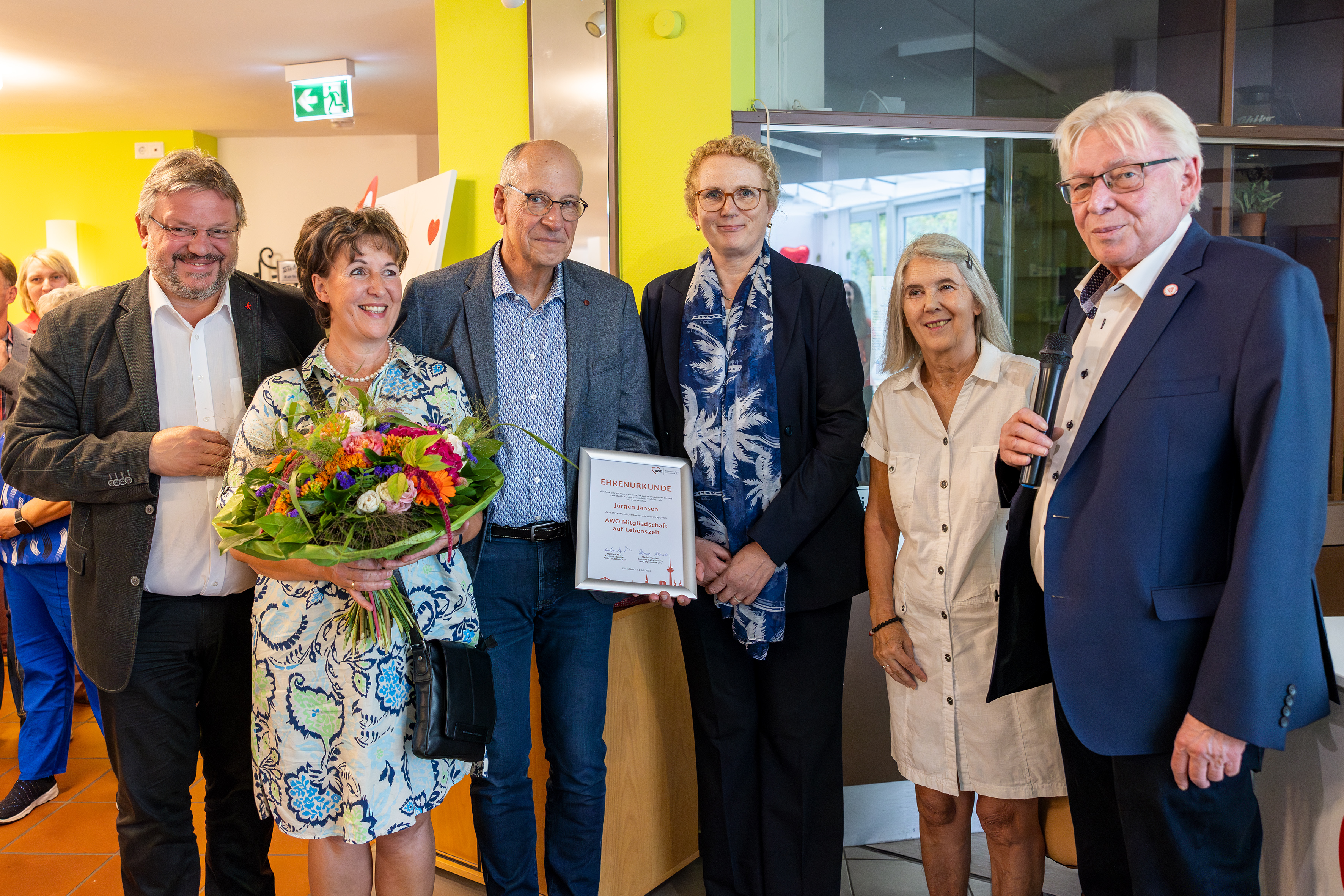Bei der offiziellen Verabschiedung vor über 50 Gästen würdigte AWO-Kreisvorsitzender Manfred Abels den scheidenden Geschäftsführer: „Die AWO Düsseldorf dankt Jürgen Jansen ganz herzlich für seinen langjährigen Einsatz, sein besonderes Engagement und für seine Treue zu den Inhalten und Zielen unseres Sozialverbandes.“ Kreisgeschäftsführerin Marion Warden sagte mit Blick auf Jansens Amtszeit: „Das enorme Fachwissen, sein Einfühlungsvermögen sowie der wertschätzende Umgang mit Mitarbeitenden und den uns anvertrauten Personen haben die Arbeit von Jürgen Jansen entscheidend geprägt.“
