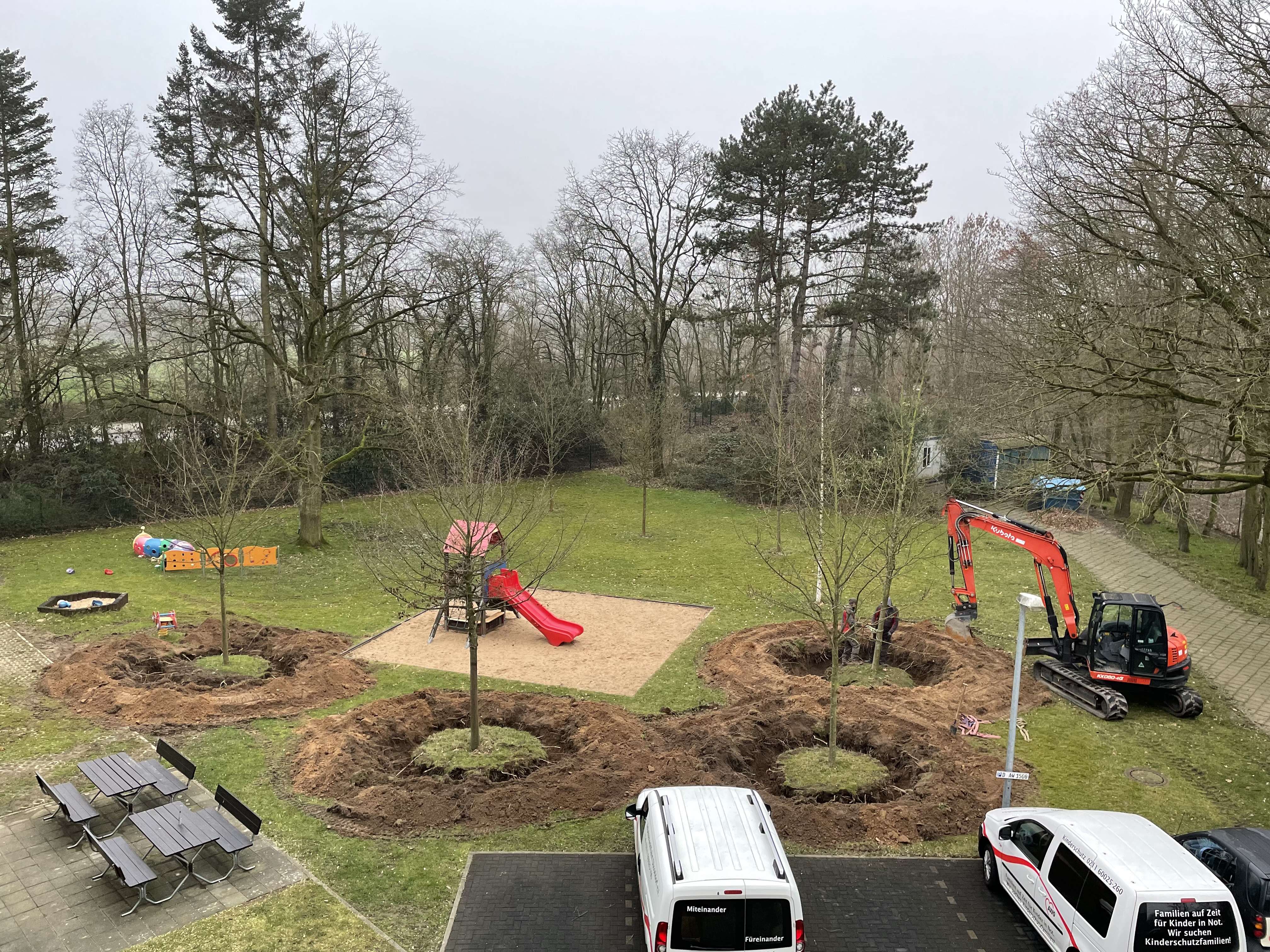 Neue Bäume braucht das Land: Auf dem AWO-Gelände an der Schlossallee 12 a bis c in Eller werden aktuell die ersten Bäume neu gepflanzt. Sie ersetzen teilweise ältere Pflanzen, die wegen durchdringender Fäule in Stamm und in der Krone, Befall mit verschiedenen Pilzarten und teilweisem Totholz gefällt werden. Trotz jahrelanger Pflege waren zuletzt elf Bäume auf dem AWO-Gelände in ihrer Standfestigkeit beeinträchtigt. Die Bäume waren so krank, dass sie eine Gefahr für Leib und Leben der Passant*innen bildeten. Das hat zuletzt die Begehung mit Baumsachverständigen ergeben.