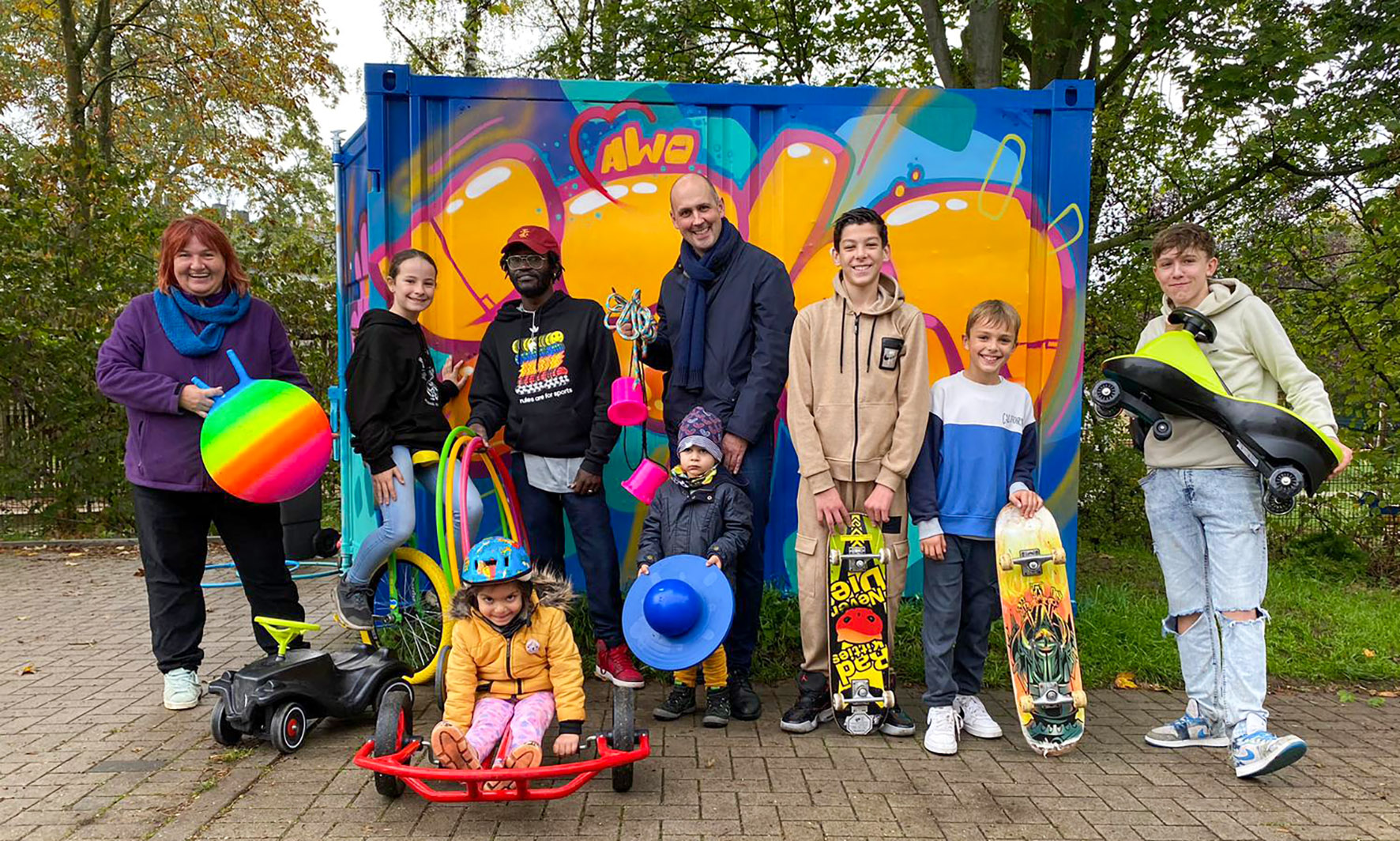 Magic Driver, Roller, Bälle, Hula Hoop und Springseile - über diese und viele andere Spielmaterialien dürfen sich die Kinder auf dem Gelände des AWO Aktiv- und Stadtteiltreffs im Stadtteil Wersten freuen. Dort wurde nun der neue Spielcontainer "Spico" offiziell eröffnet.