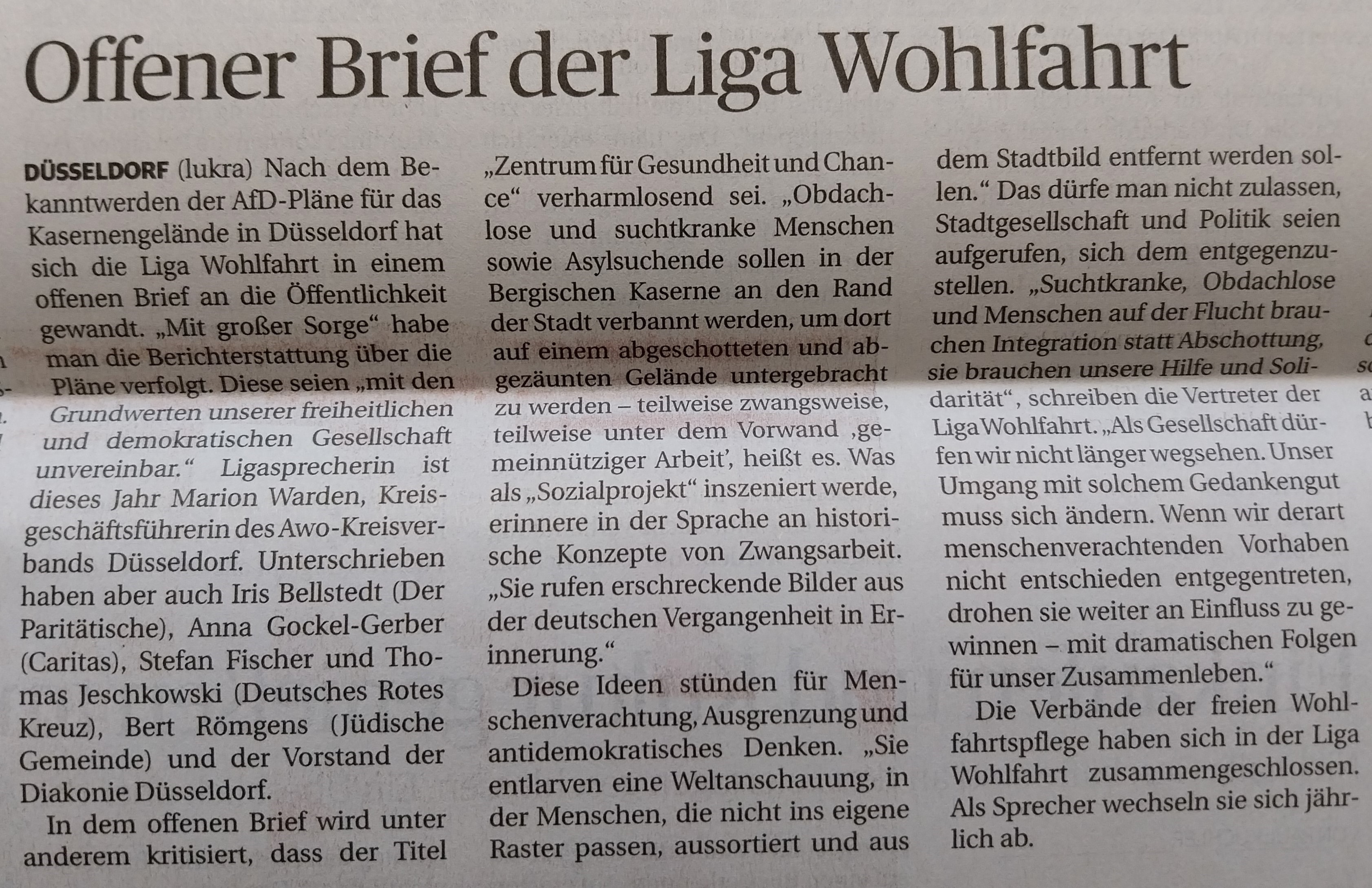 Offener Brief der liga wohlfahrt düsseldorf
