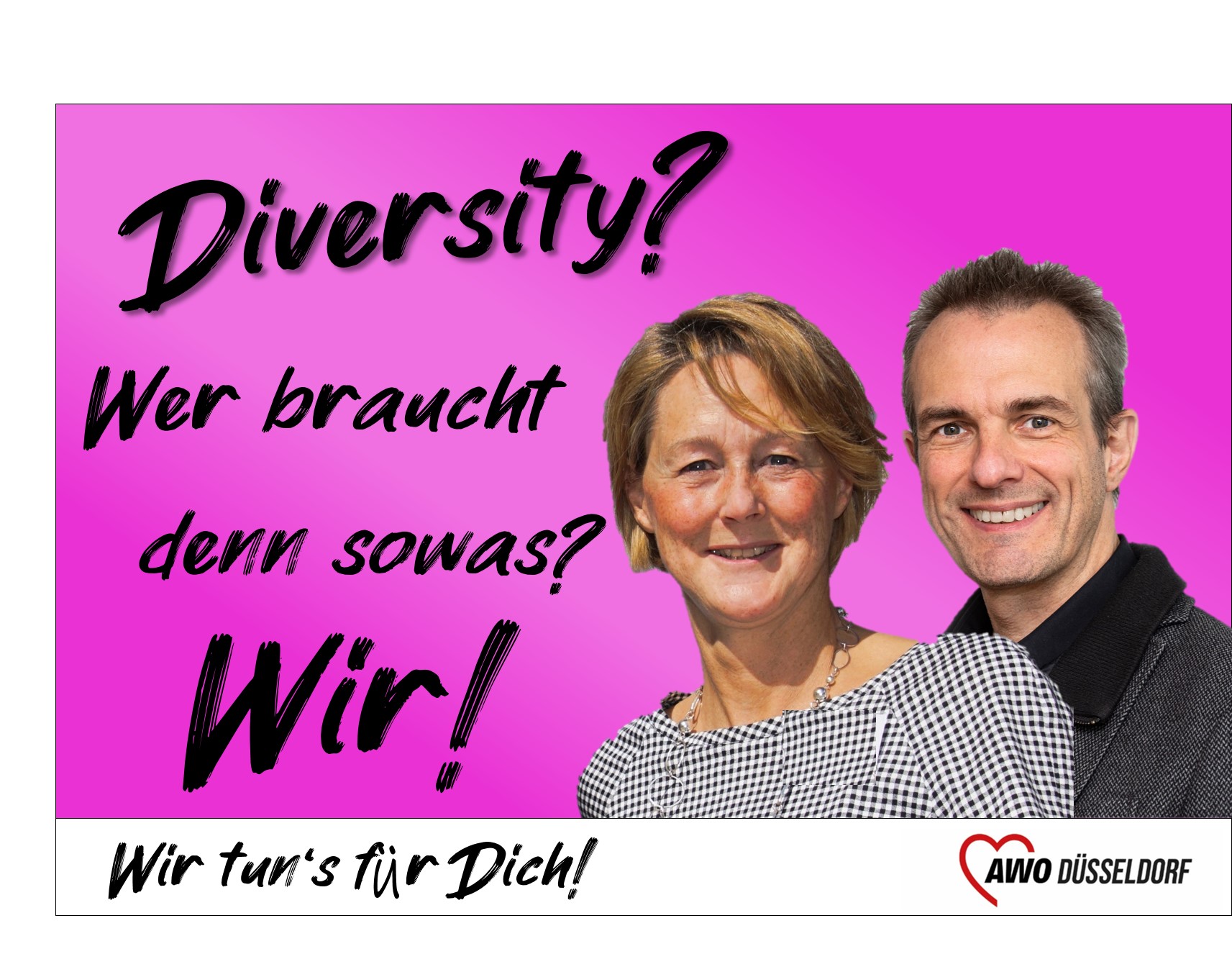 Susanna Schön und Bernd Plöger bilden schon seit längerem das „Team Diversity“, und der heutige Internationale Tag der Toleranz ist der richtige Zeitpunkt, sie in ihrer neuen Funktion vorzustellen. Mit je einer halben Stelle bündeln sie im „Team Diversity“ die facettenreiche Vielfalt der AWO. Gemeinsam wollen sie aufzeigen, welche Chancen sich bieten, wenn die vorhandene Vielfalt Anerkennung findet, unterstützt und letztlich auch für den Verband wirkungsvoll zum Einsatz gebracht wird.