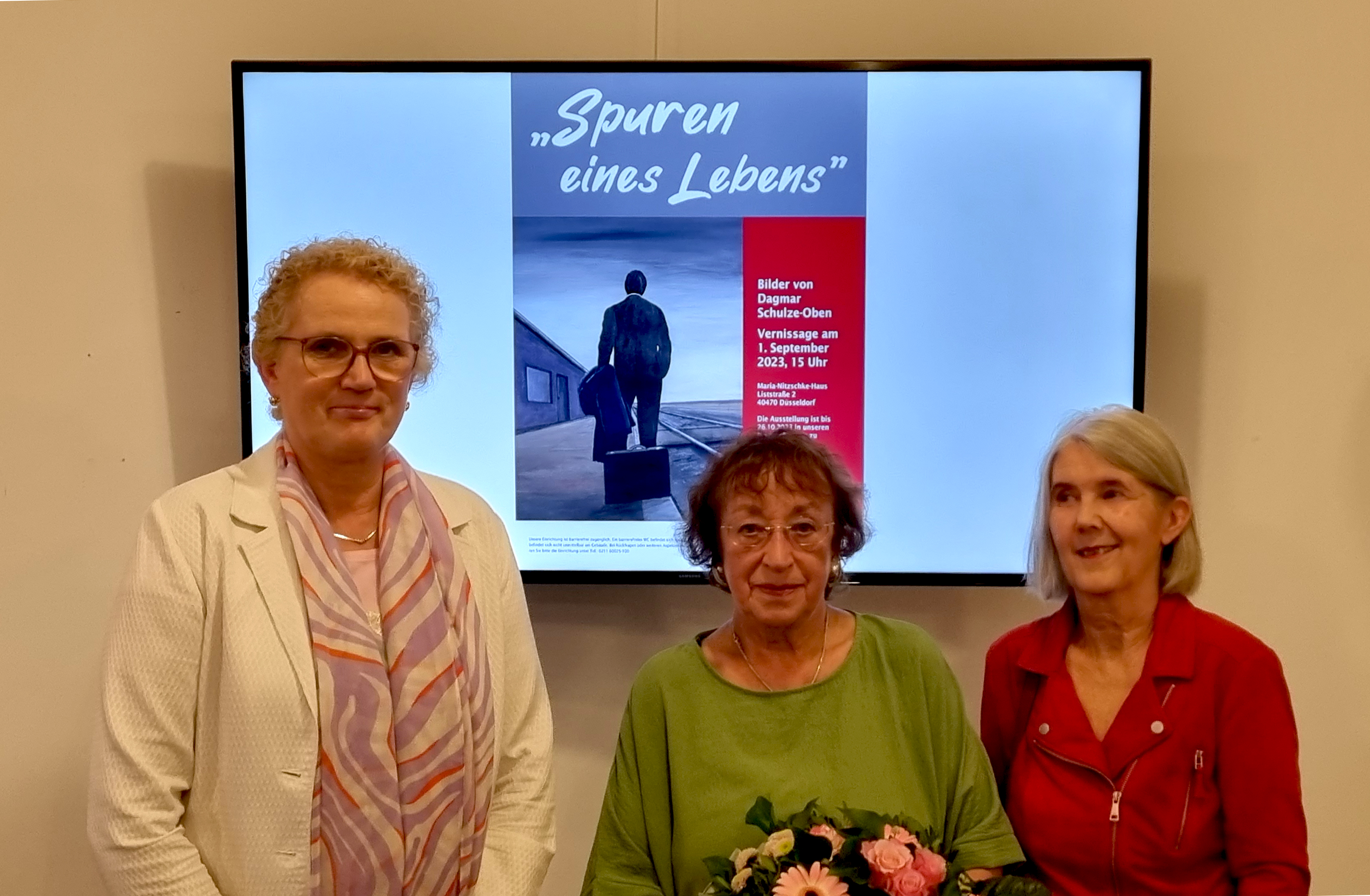 Am Freitag fand die Vernissage von Dagmar Schulze-Oben in den Räumlichkeiten des Maria-Nitzschke-Hauses statt. Zur Ausstellungseröffnung sprachen AWO-Vorstandsmitglied Angelika Wien-Mroß und AWO-Kreisgeschäftsführerin Marion Warden. Danach gab es eine Führung für alle Besucher*innen von der Künstlerin selbst. In ihrer Ausstellung präsentiert Schulze-Oben rund 65 Werke, die die Betrachter*innen auf eine Reise durch das Leben mit all seinen Lebensphasen mitnehmen. Die Ausstellung ist bis 26. Oktober 2023 im Maria-Nitzschke-Haus zu sehen.