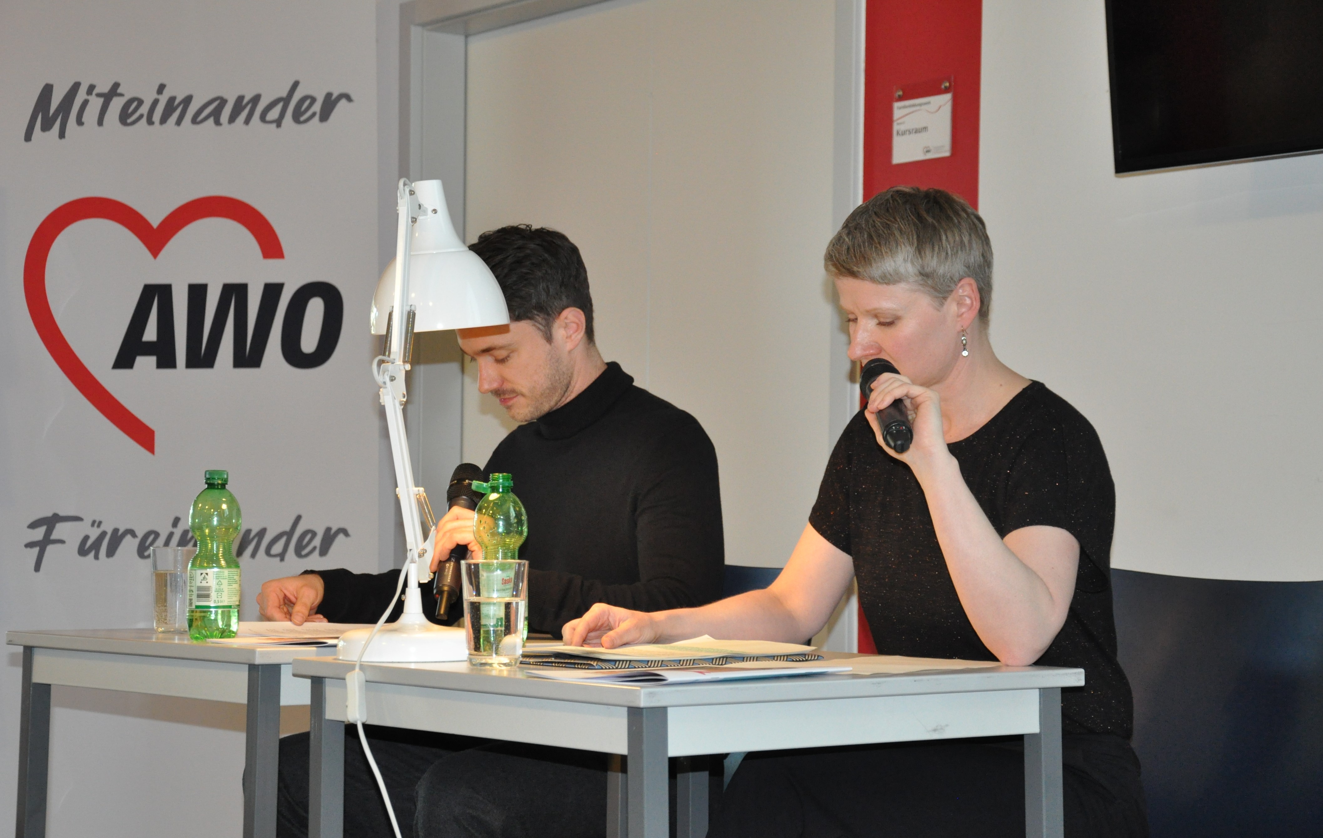 Die Schauspieler*innen Juliane Pempelfort und Josia Krug haben historische Ereignisse, Biografien und Zeitzeug*innenberichte vorgetragen, musikalisch begleitet von Aylin Kabata.