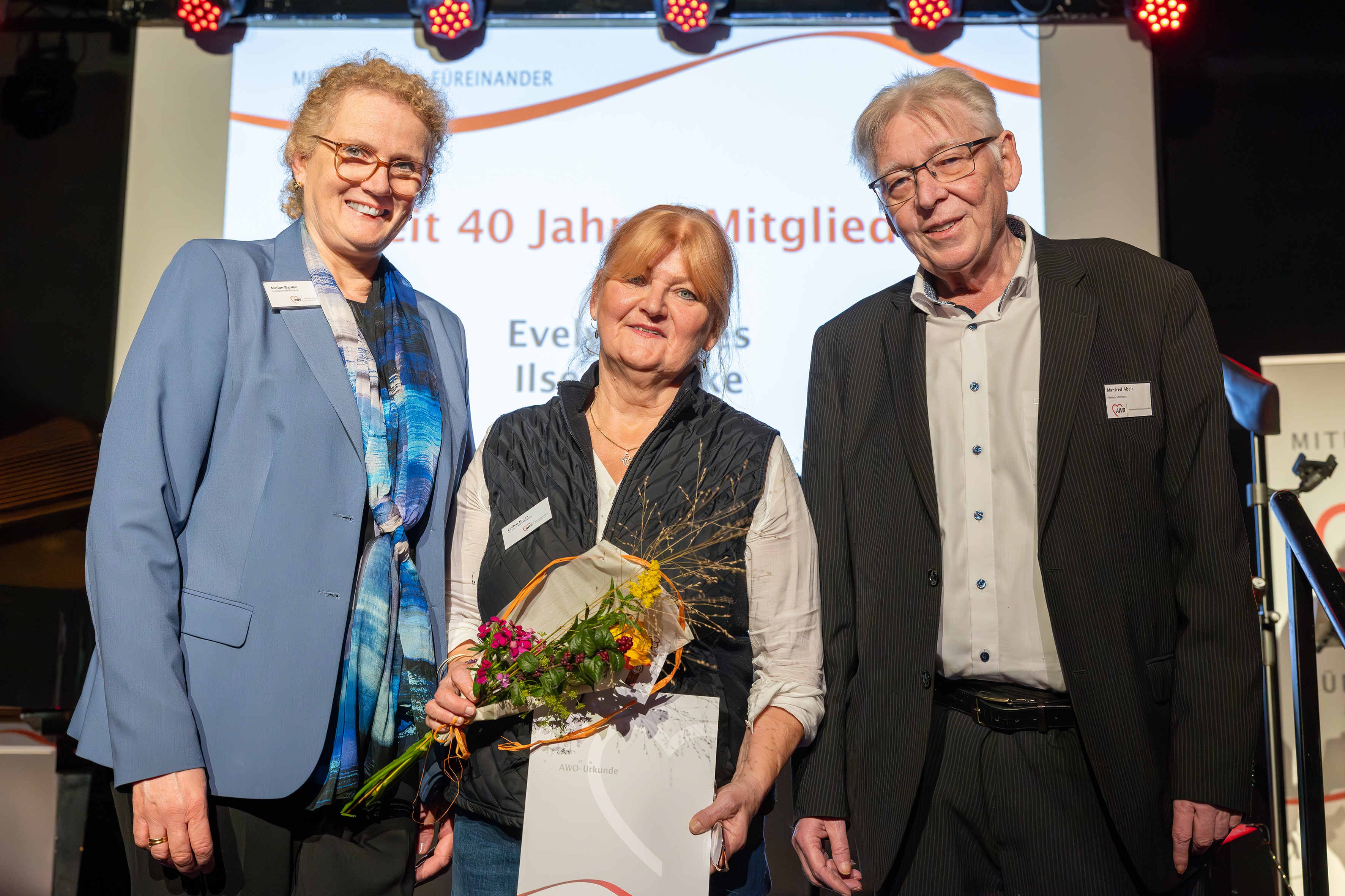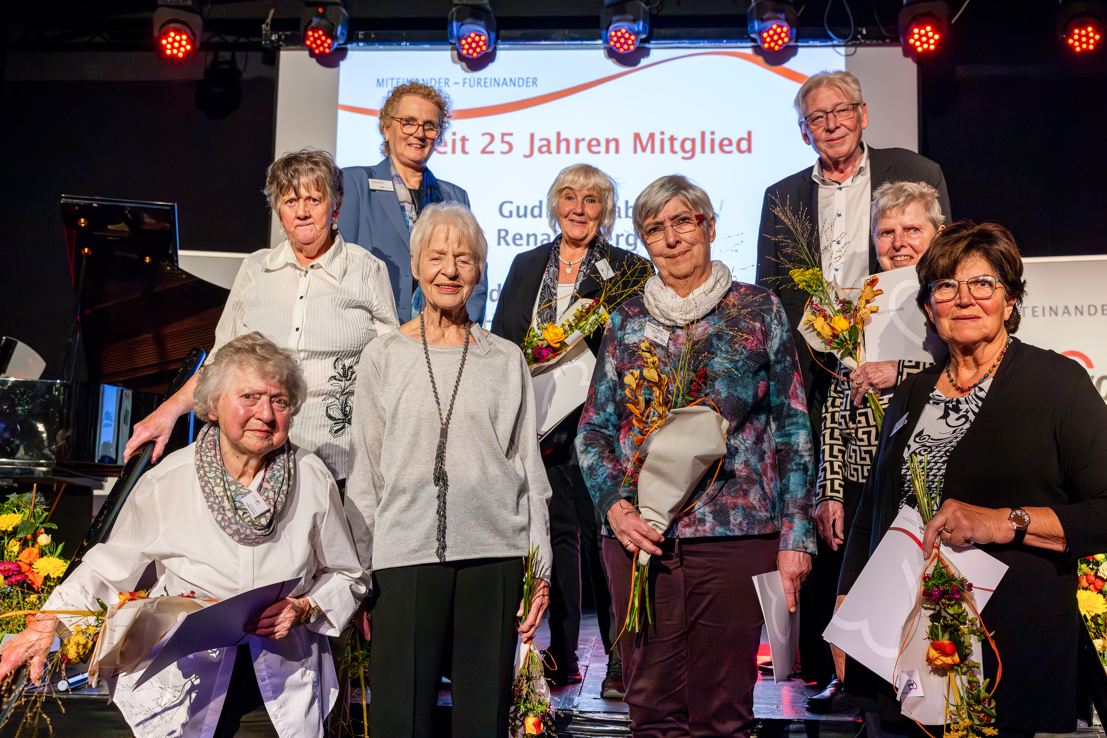 Genau 1.310 Jahre Mitgliedschaft waren mit den drei Dutzend Jubilar*innen im „Theater der Träume“ in Heerdt vertreten. Sie wurden für ihre Treue zur AWO Düsseldorf geehrt. Die AWO ist als Mitgliederverband organisiert und hat aktuell mehr als 1.800 Beteiligte. Nach der mehrjährigen Corona-Pause fand die Jubilar*innenfeier erstmals seit 2019 wieder im großen Rahmen statt.