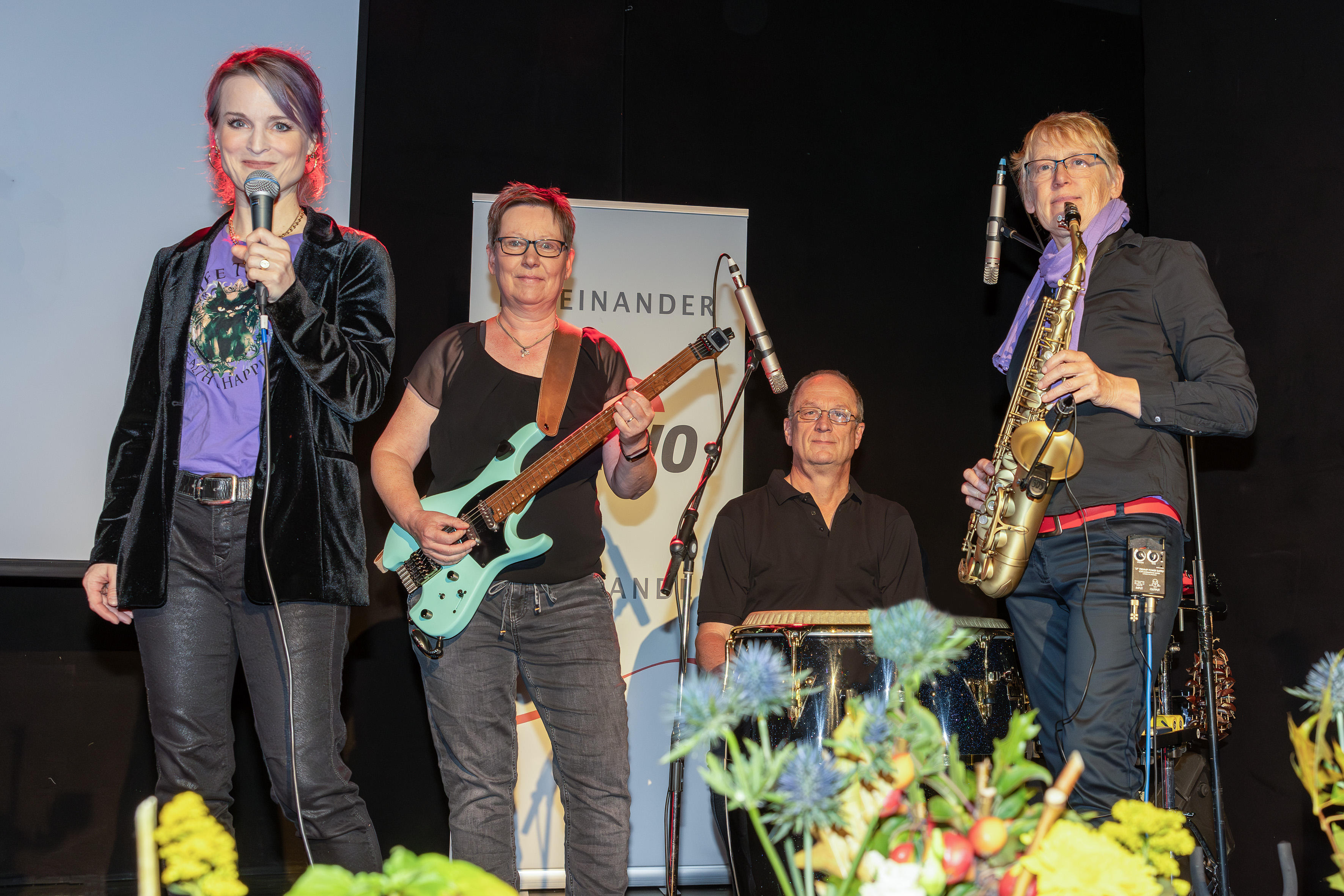 Abels skizzierte die jüngere Geschichte des Verbandes – eine Art Zeitreise durch die AWO-Geschichte. Nach den Ehrungen stand die Musik im Mittelpunkt des Programms. Die Band „JaZzcake“ begeisterte das Publikum mit bekannten Melodien wie „Fly me to the moon“ oder „La vie en rose“, bevor Anja Lerch unter dem Motto „Anjas Singabend“ zum Mitsingkonzert lud – passend zum AWO-Leitspruch „Miteinander- Füreinander“.