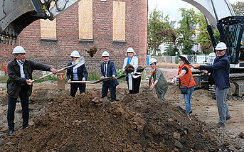 (kwl) Erster Spatenstich für ein neues Wohnquartier: Auf dem Gelände des ehemaligen Hospitals in Benrath errichtet die Städtische Wohnungsbaugesellschaft (SWD) bis 2023 sechs Mehrfamilienhäuser mit 91 Wohnungen. Im…