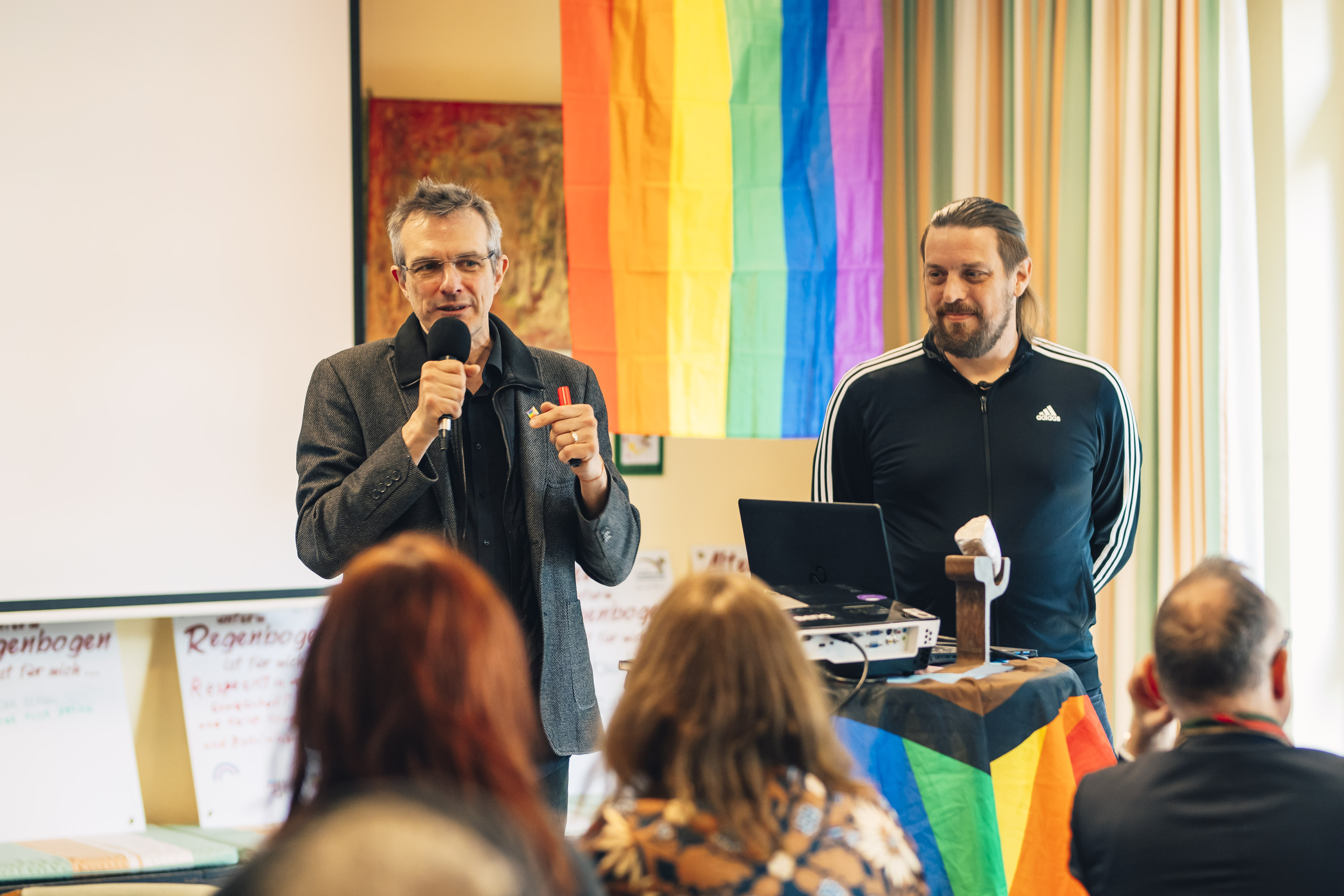 „Wir möchten den Raum öffnen für Menschen, die vorher nicht die Möglichkeit hatten teilzuhaben, sagt Anne Kühl. „Was müssen wir zum Beispiel tun, damit Menschen mit Zuwanderungsgeschichte bei Sportangeboten mitmachen möchten? Es ist wichtig zuzuhören, anzunehmen und sensibel zu sein für den einzelnen Menschen.“ Es gibt auch ganz konkrete Anregungen, um Menschen, die nicht der sogenannten Mehrheitsgesellschaft angehören, anzusprechen: in allen „zentren“ gibt es Gebetsteppiche, Schilder in verschiedenen Sprachen. Oder was ist mit queerer Literatur im Bücherregal, queeren Filmabenden und diversen Ankreuzmöglichkeiten bei Formularen, gibt Bernd Plöger zu denken. „Es gibt sehr viel zu berücksichtigen, wichtig ist, sich jetzt auf den Weg zu machen.“