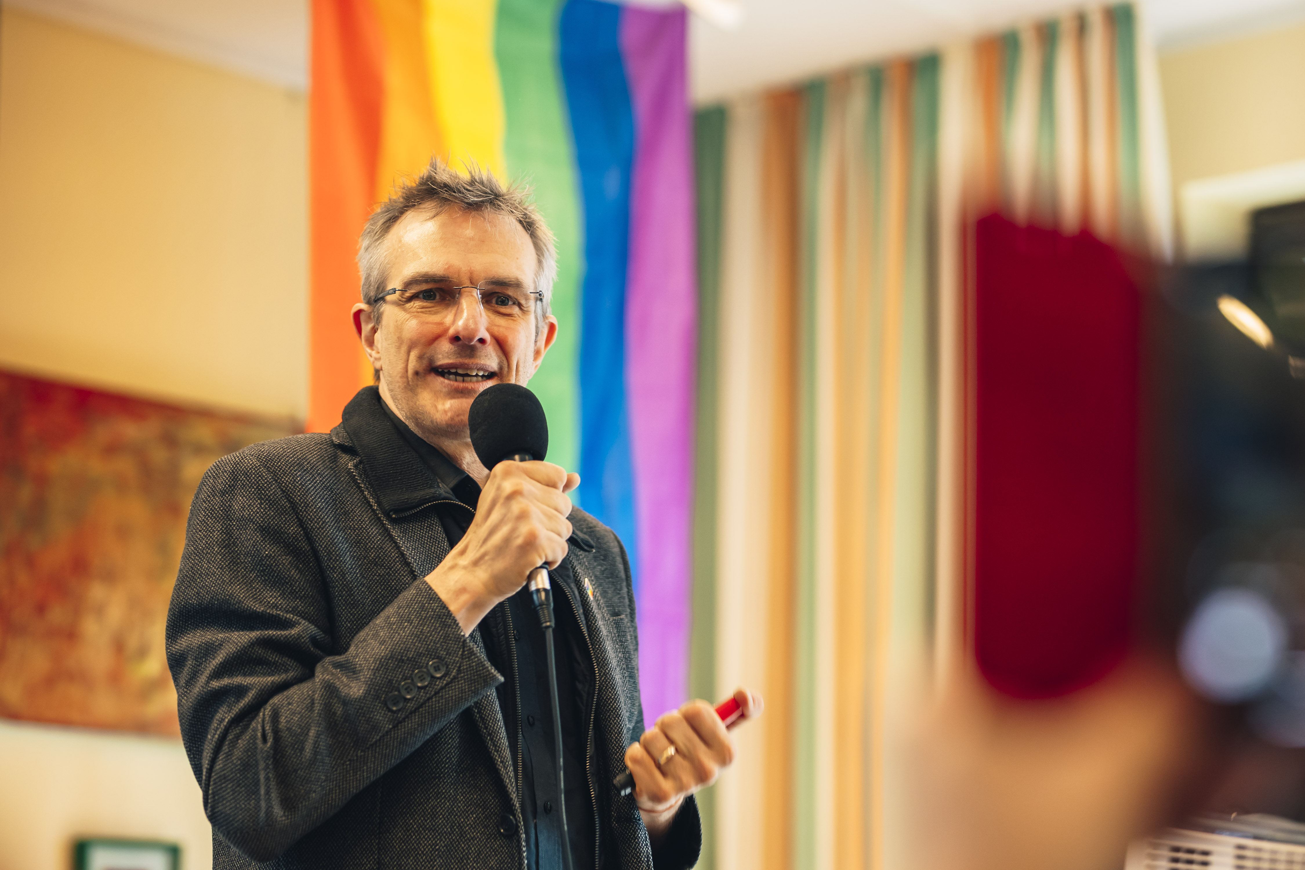 Bernd Plöger, Koordinator des „zentrum plus“ der AWO in Unterbilk, ist auch Teil der Beratungsstelle „Queer im Alter“, einer Kooperation mit der Aidshilfe Düsseldorf. Sie berät, stärkt und vernetzt ältere queere Menschen, schult Fachkräfte in der Pflege und in der offenen Senior*innenarbeit. Vertrauen und Beziehung sind das wichtigste, sagt er. „Durch Erfahrungen von Ausgrenzung und Diskriminierung bis hin zu Kriminalisierung, auch von staatlicher Seite, ist es für ältere queere Menschen oft schwer, sich an offizielle Stellen zu wenden. Sie brauchen niedrigschwellige, auf sie zugeschnittene Angebote und eine respektvolle Versorgung. „Queer im Alter“ berät und begleitet sie und sorgt für eine kompetente und diskriminierungsfreie Beachtung ihrer Bedarfe, von der Erstberatung bis zur Vermittlung sensibilisierter Pflegeeinrichtungen.“