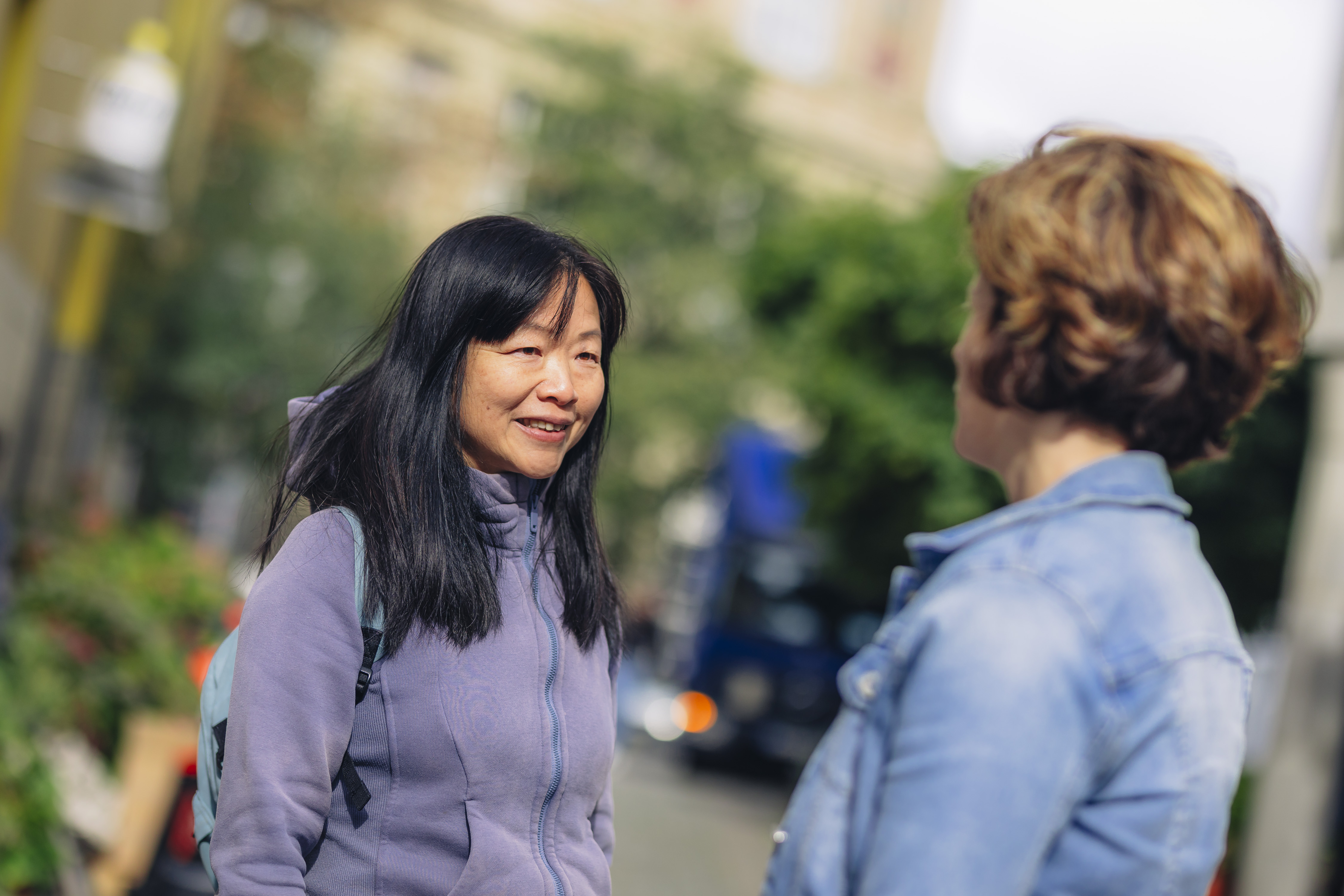 „Als ich 2017 zum ersten Mal das Büro in Derendorf betrat, wusste ich nicht, was mich erwartet“, erinnert sich Yu Wang. Vor einigen Jahren war sie aus dem Süden Chinas nach Düsseldorf gezogen — beruflich folgten sie und ihr Mann der Dependance seiner Firma. Was fehlte, war eine Möglichkeit, im Alltag heimisch zu werden. Bei einem Deutschkurs erfuhr sie von den AWO-Sprachpartner*innen, meldete sich an und traf dann auf Stephanie.